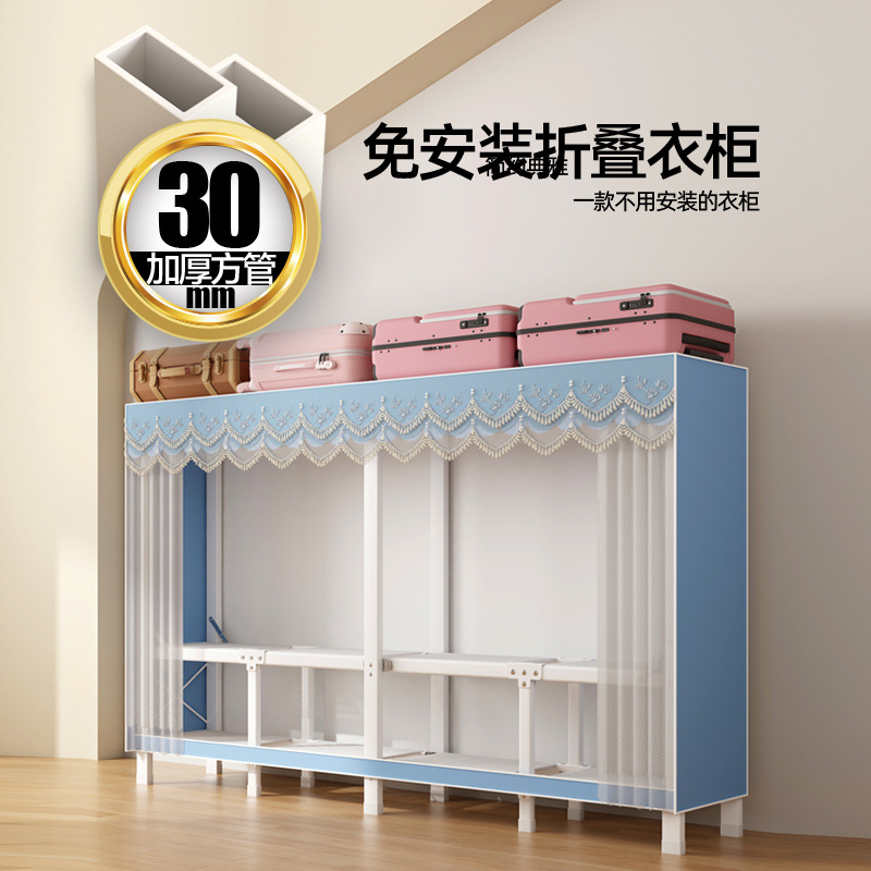 简易衣柜家用折叠免安装布衣柜卧室出租房用钢架收纳衣橱结实耐用