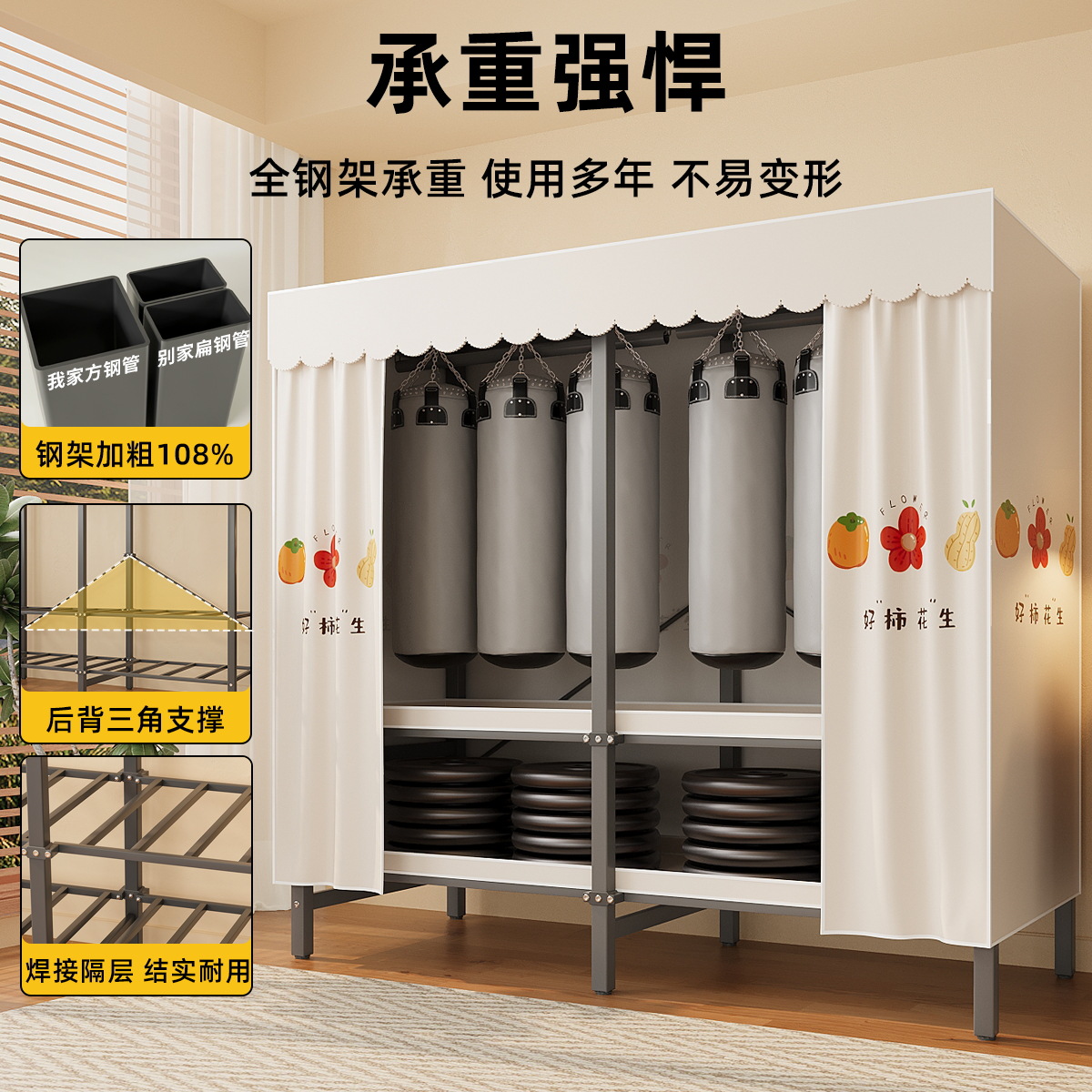 衣柜卧室家用出租房免安装折叠布衣柜简易全钢架金属衣橱收纳柜子