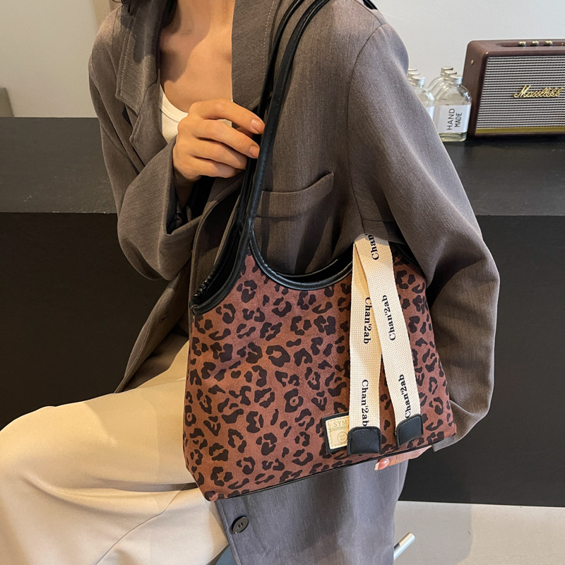 跨境豹纹水桶包女新款秋冬潮流时尚斜挎包韩版小众设计托特包