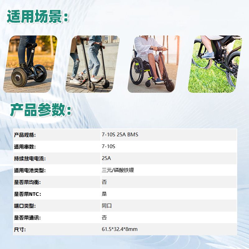 8串铁锂电池保护板7串9串10串电池保护板25A同口带温控bms保护板