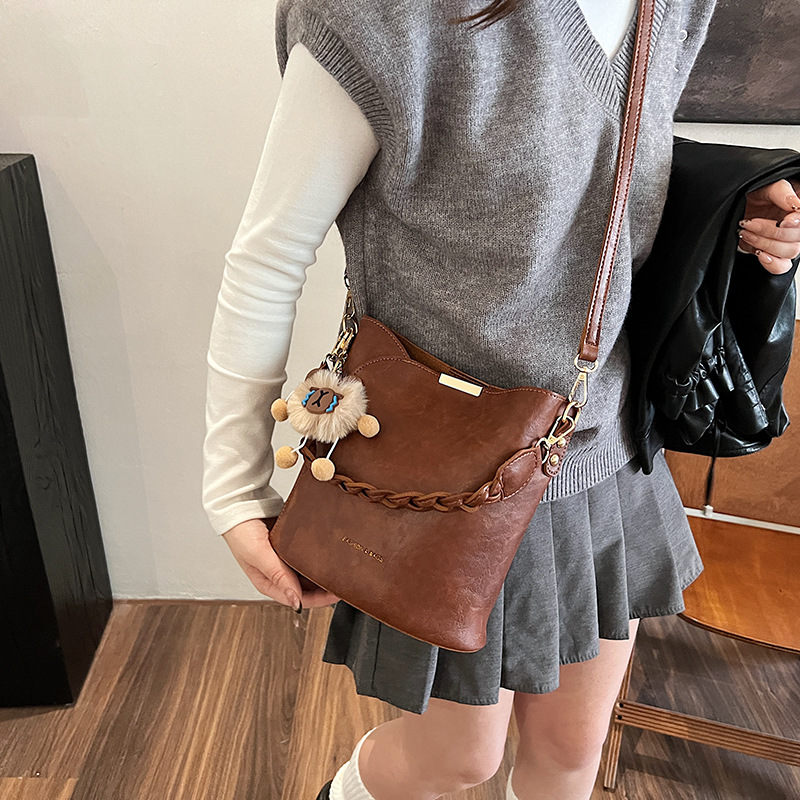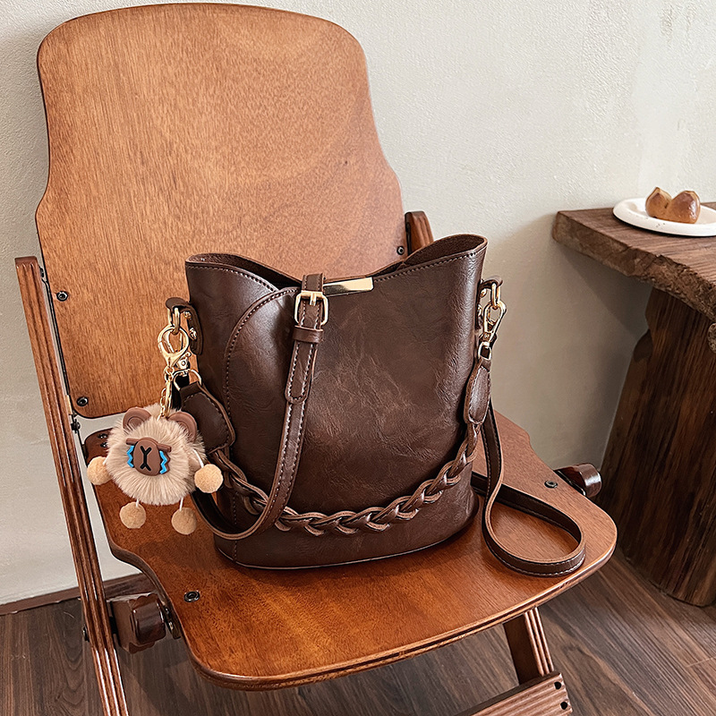 跨境包包女士新款高级质感复古小众设计百搭斜挎包爆款手提水桶包