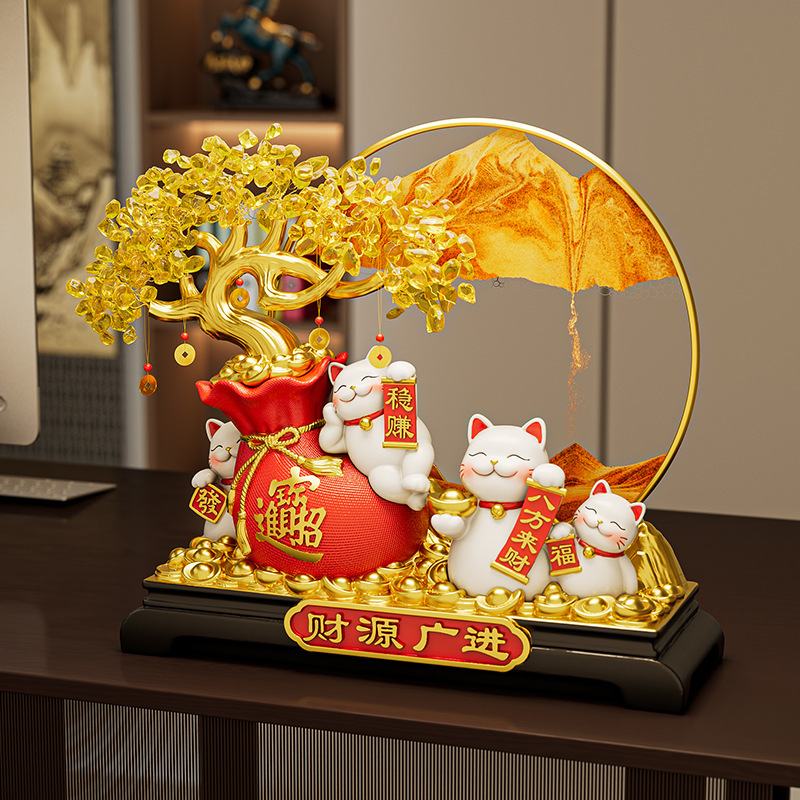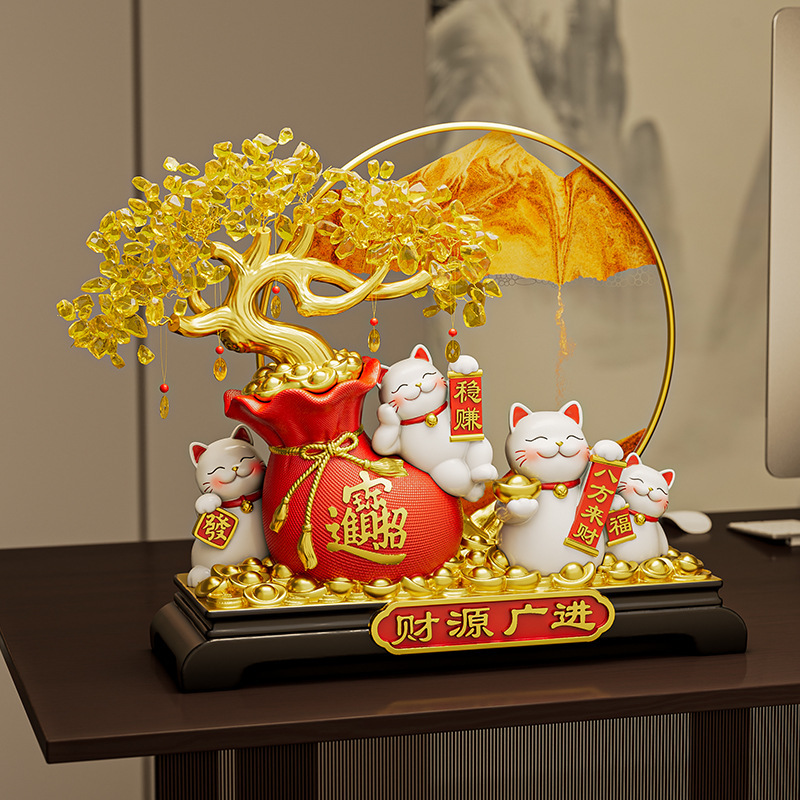 新中式发财树猫摆件开业礼物客厅店铺前台装饰品乔迁新居礼品