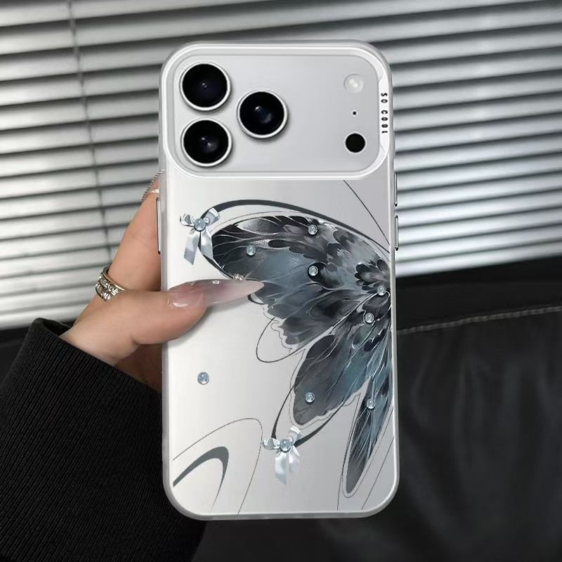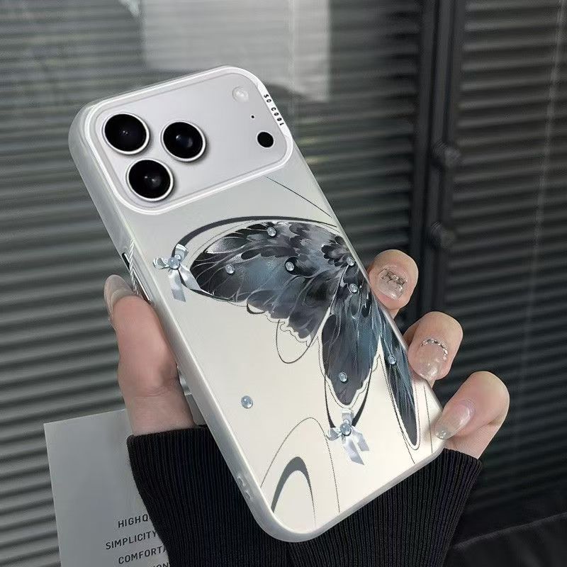 玄青蝴蝶适用苹果17手机壳新款iPhone16Air彩银壳15/14Promax磨砂
