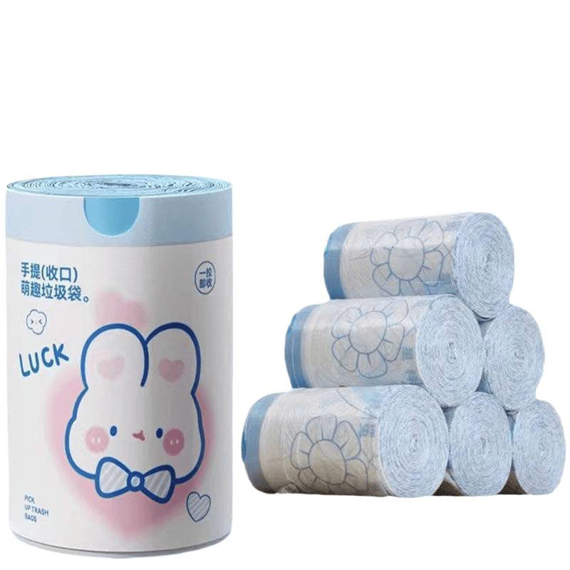 蓝心兔抽绳式可爱卡通高颜值家用厨房手提式加厚垃圾袋印花支