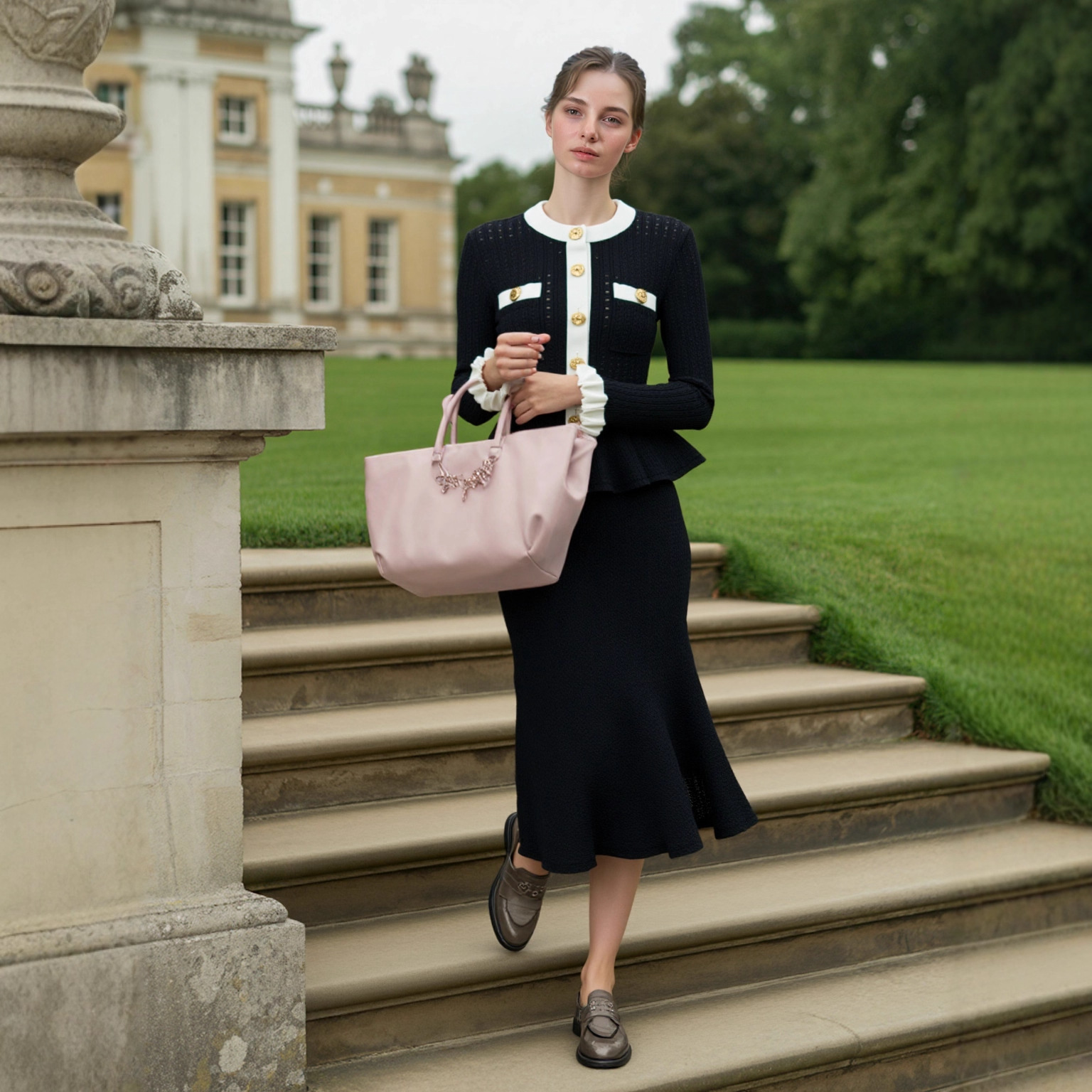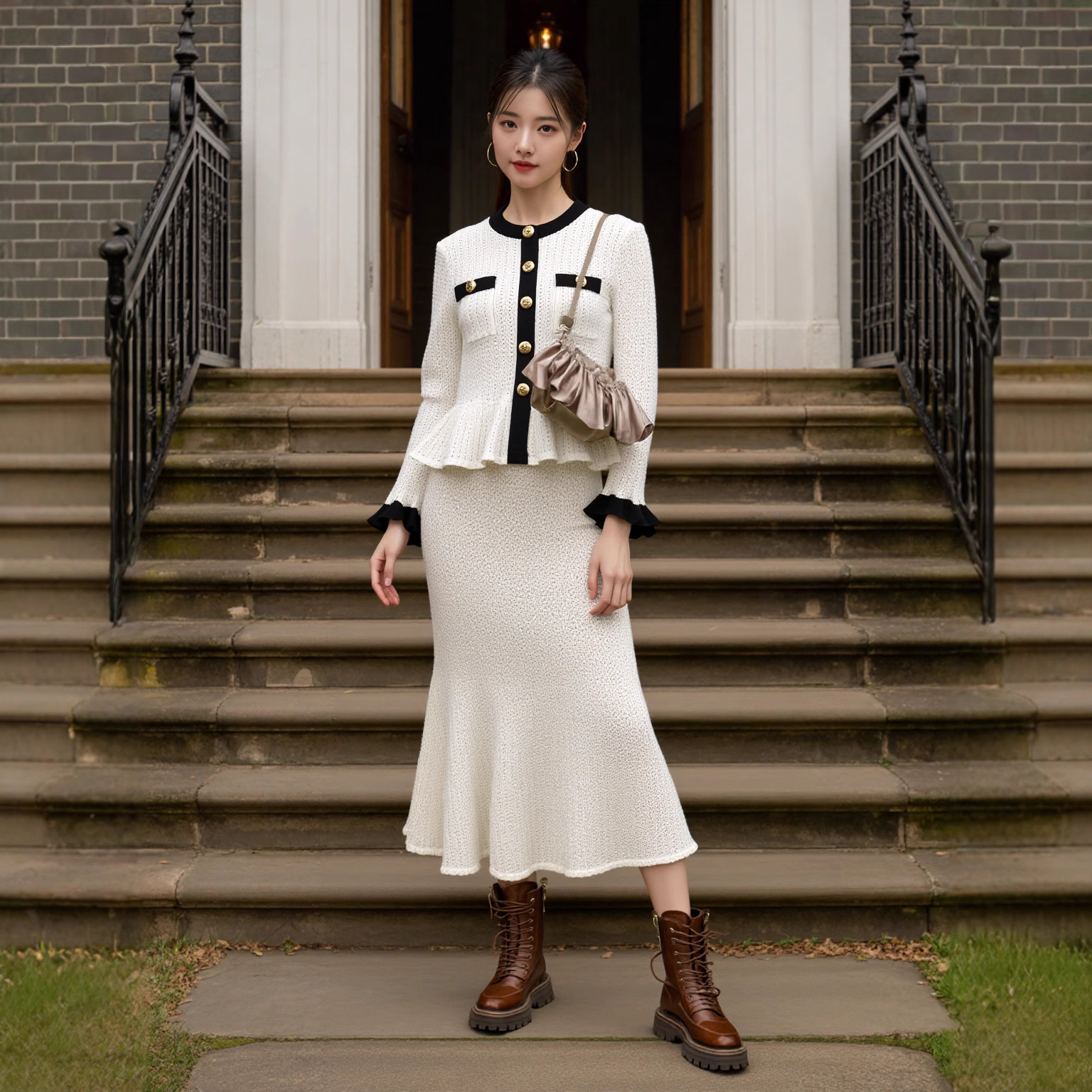 | 适用场景 | 城市通勤 | 1 | 2025秋季新款法式气质名媛千金风撞色拼接圆领长款现货2025秋冬季深圳南油欧美风新款针织连衣裙套装 |