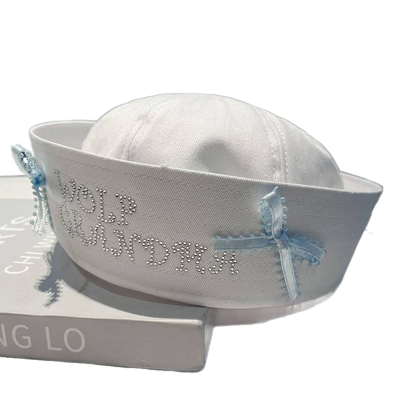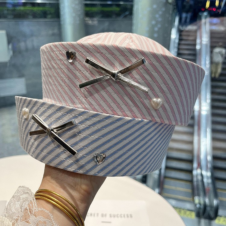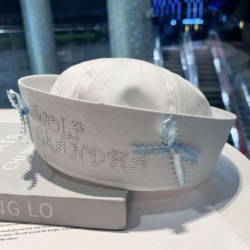 可爱猫水手帽女新款蝴蝶结烫钻盆帽千禧辣妹翻檐海军贝雷帽子潮