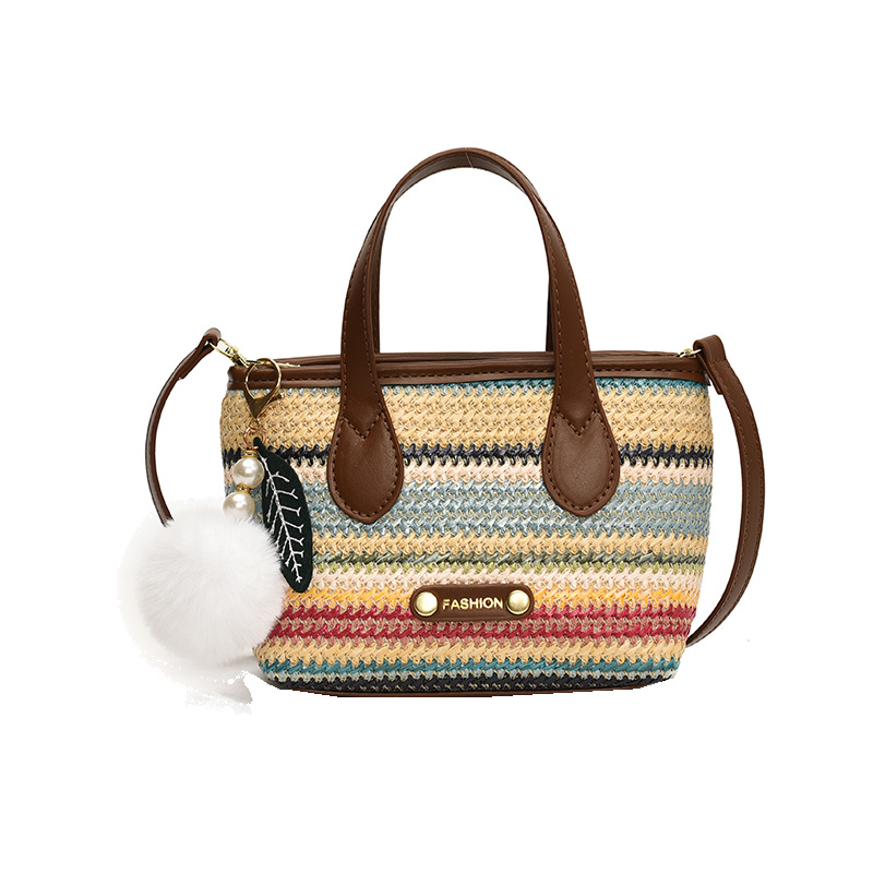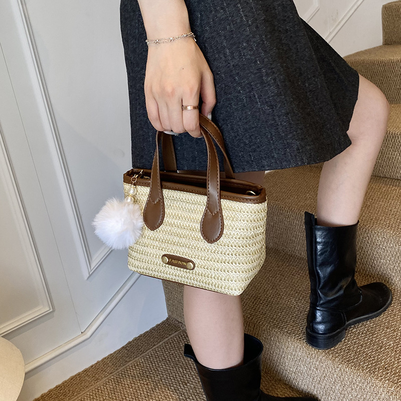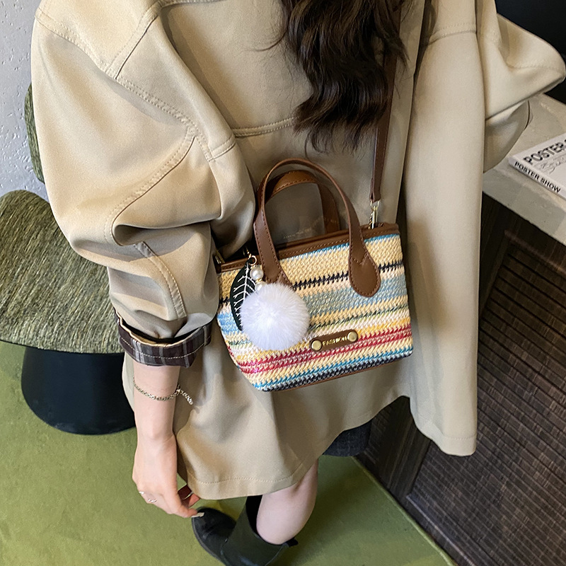 海边编织水桶包包女士新款流行时尚草编包洋气百搭简约单肩包