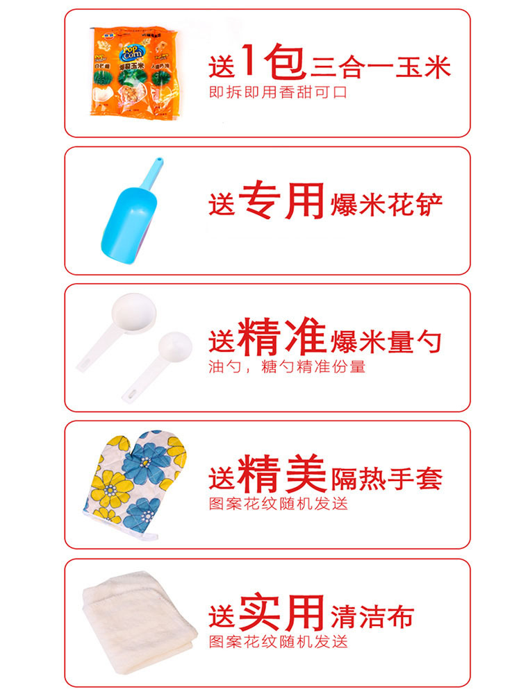| 颜色 | 商用金属爆米花机(大)(摆摊推荐)赠原料试用 | 颜色 | 商用金属爆米花机(大)【定时保温款】赠原料 |