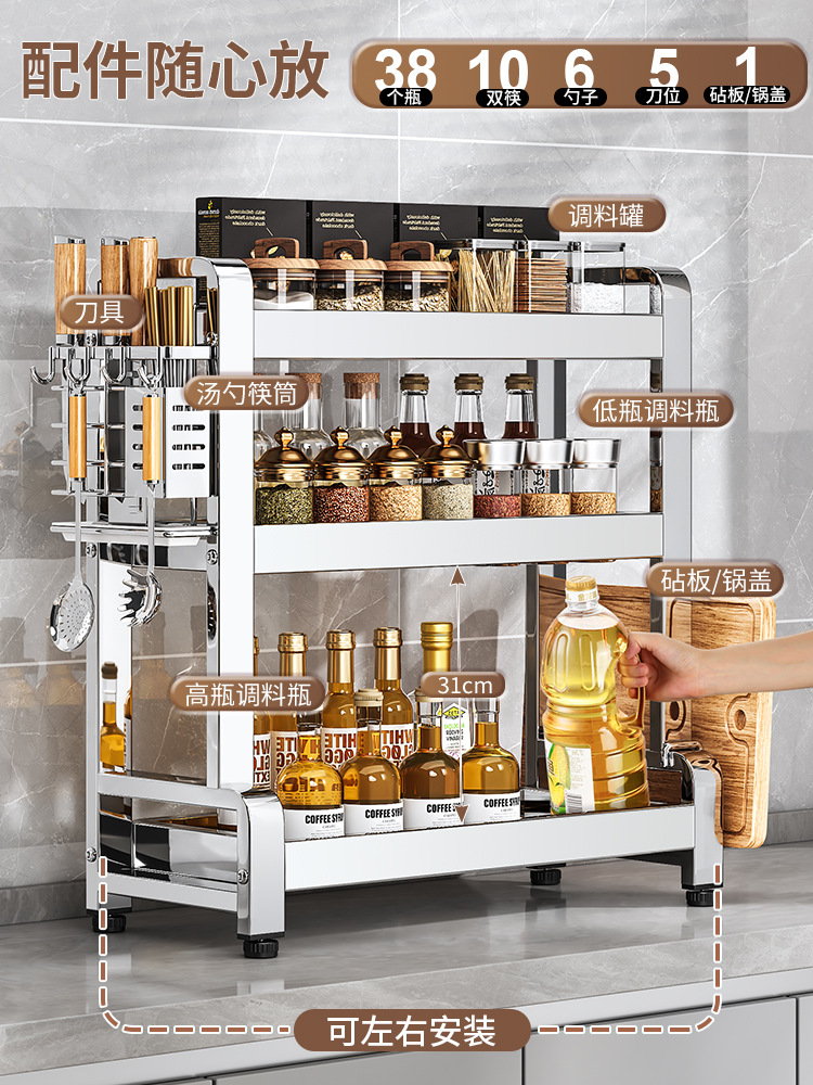| 层数(规格) | 【304不锈钢·特厚特粗】53cm三层生锈包退 | 层数(规格) | 【304不锈钢·特厚特粗】53cm三层全套【刀架筷筒+挂钩+砧板架】 |