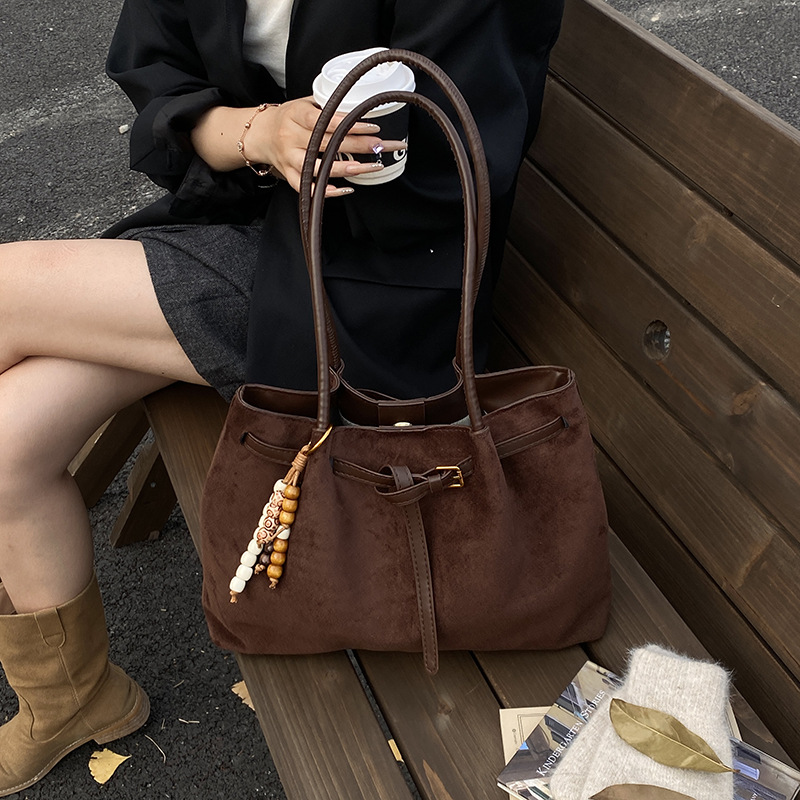 时尚休闲大容量麂皮绒托特包跨境秋冬新款通勤超火高级感单肩女包