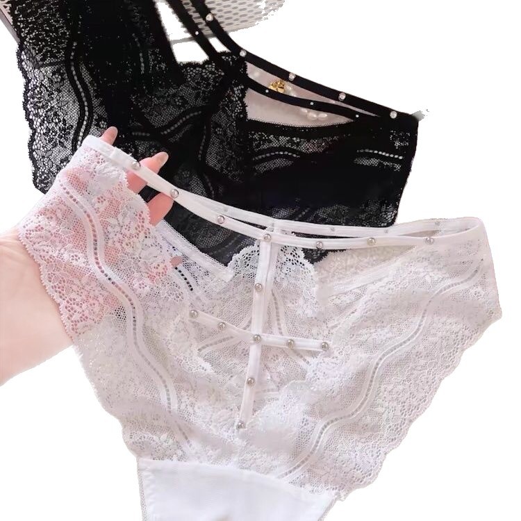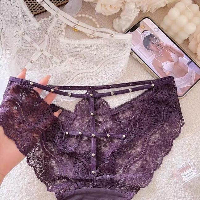 柳丁夏季性感细带钉珠镂空蕾丝内裤火辣低腰时尚透气网纱三角裤女