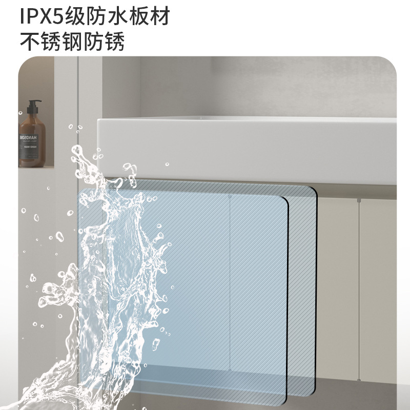 | 规格 | 80CM肤感一体盆+智能美妆镜柜 | 规格 | 80CM肤感一体盆+全封普通镜柜 |