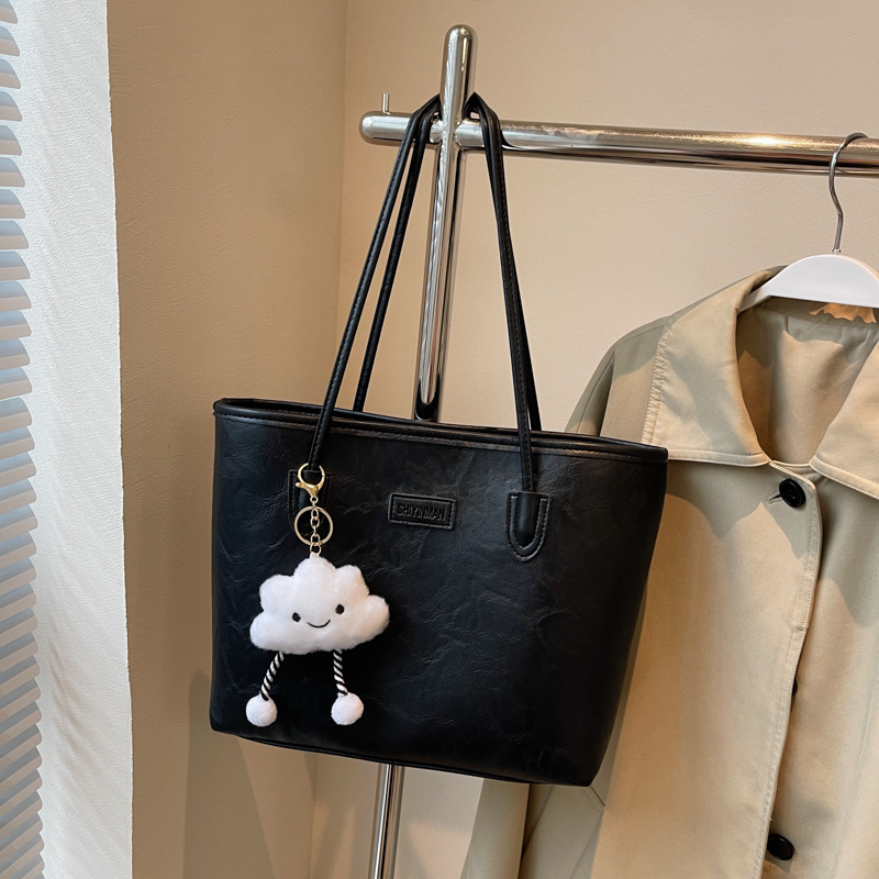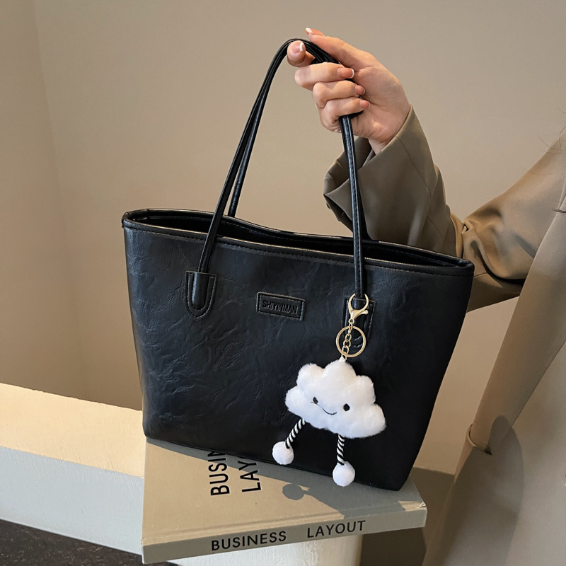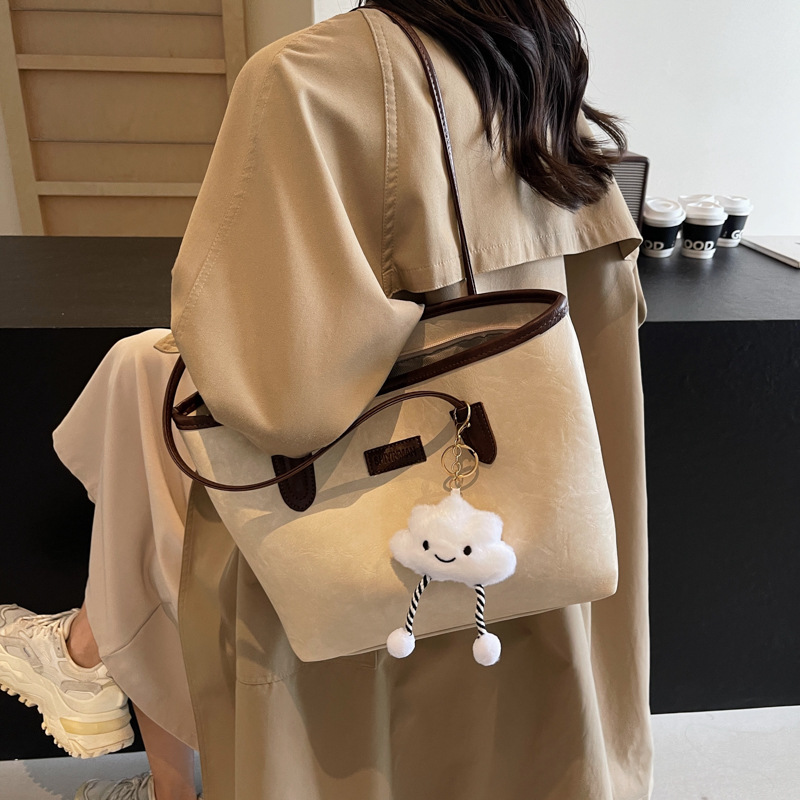 高级感时尚百搭单肩通勤包包女毛绒秋季新款学生上课大容量托特包