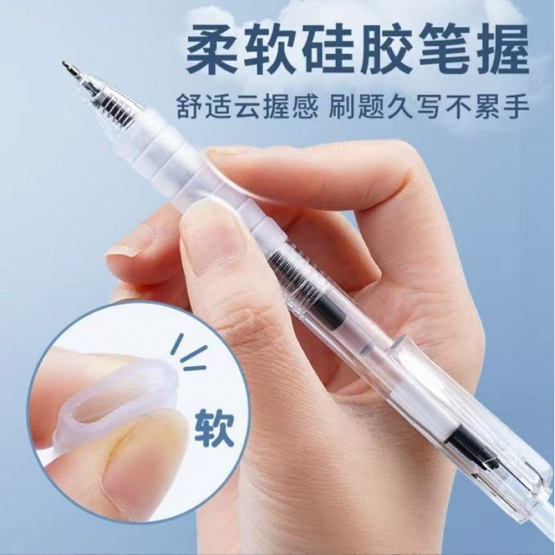 作业签字笔握手按动中性笔速干st按压式笔防疲劳黑色学生刷题笔
