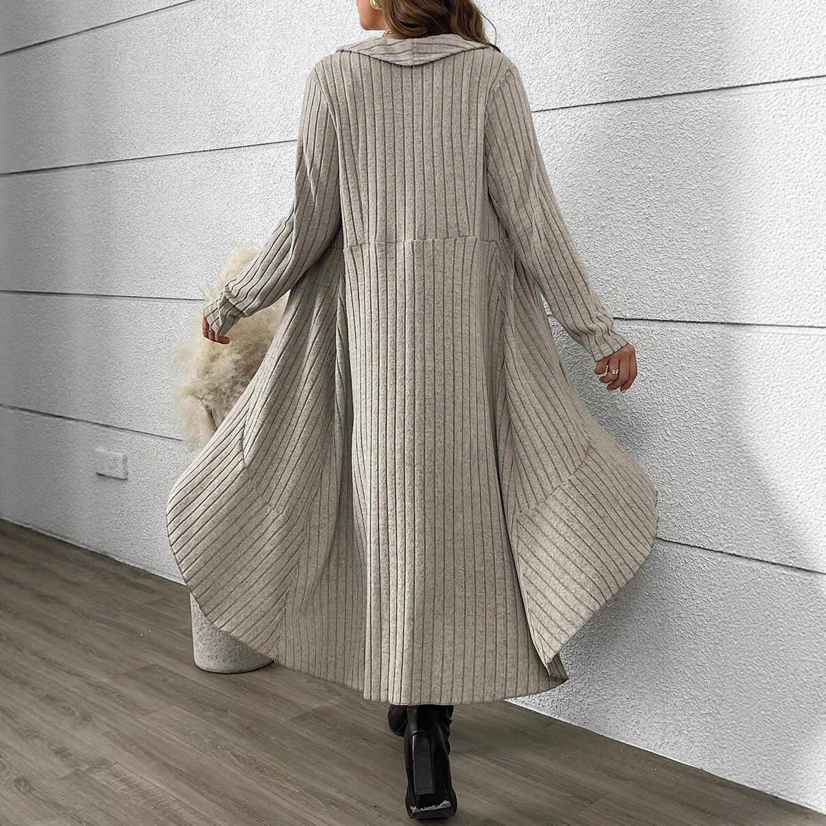 2025秋冬跨境褶皱长款长袖开衫风衣外披针织外套内衬连衣裙套装
