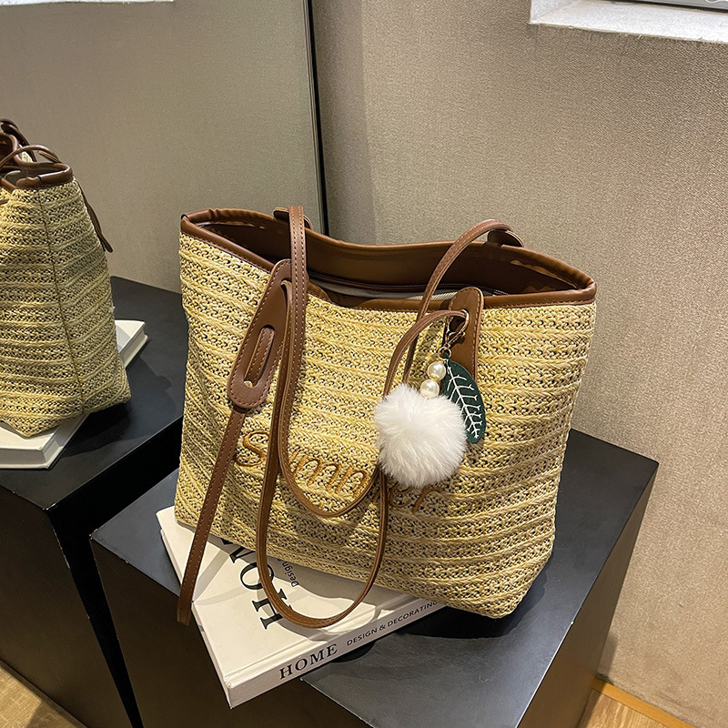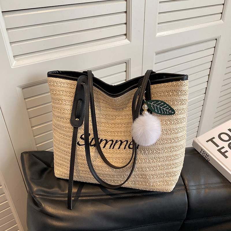 批发编织包包女式跨境新款夏天流行海边单肩包大容量托特包通勤包