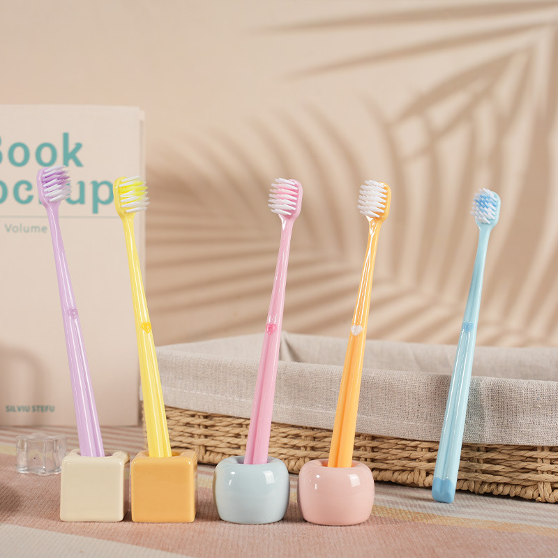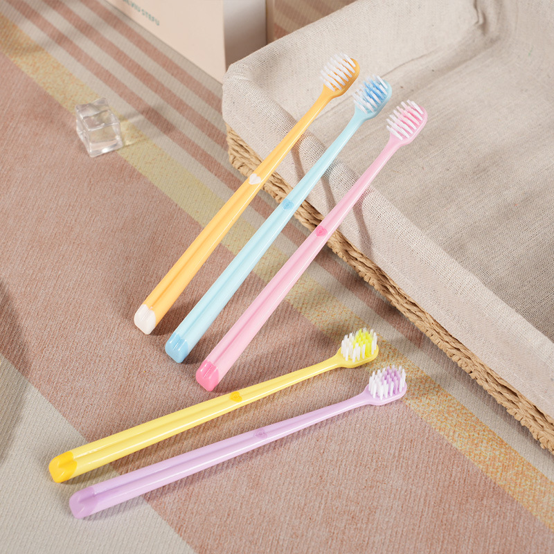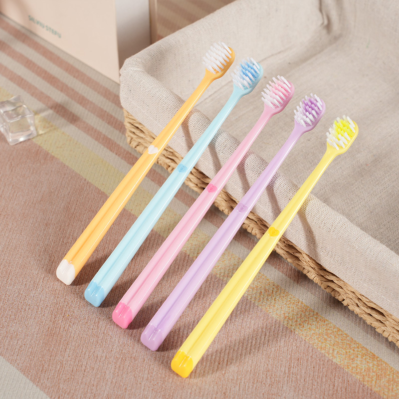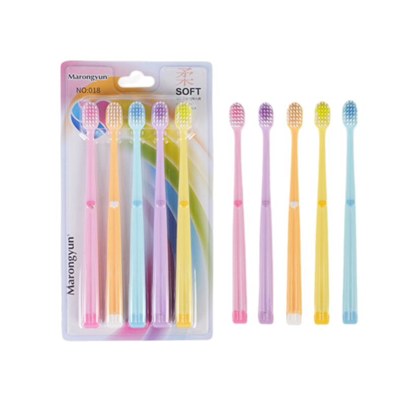 家用待客成人软毛牙刷超市批发马卡龙色五支装爱心款成人软毛牙刷
