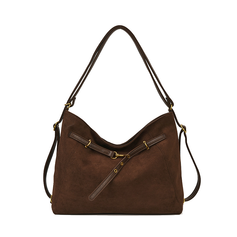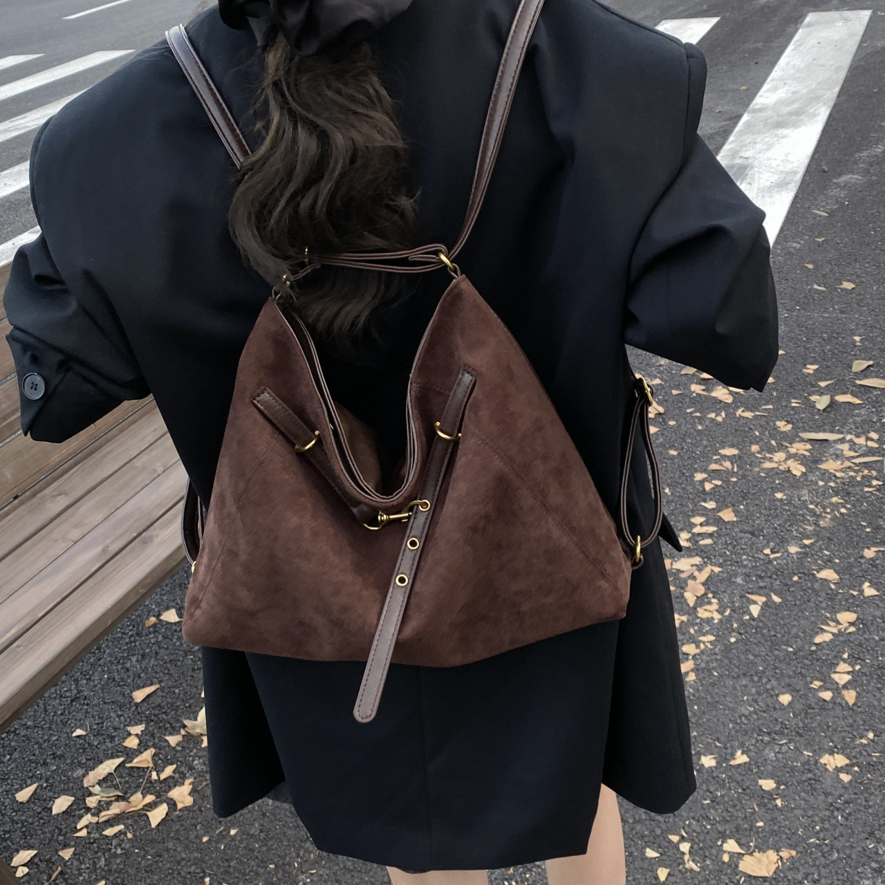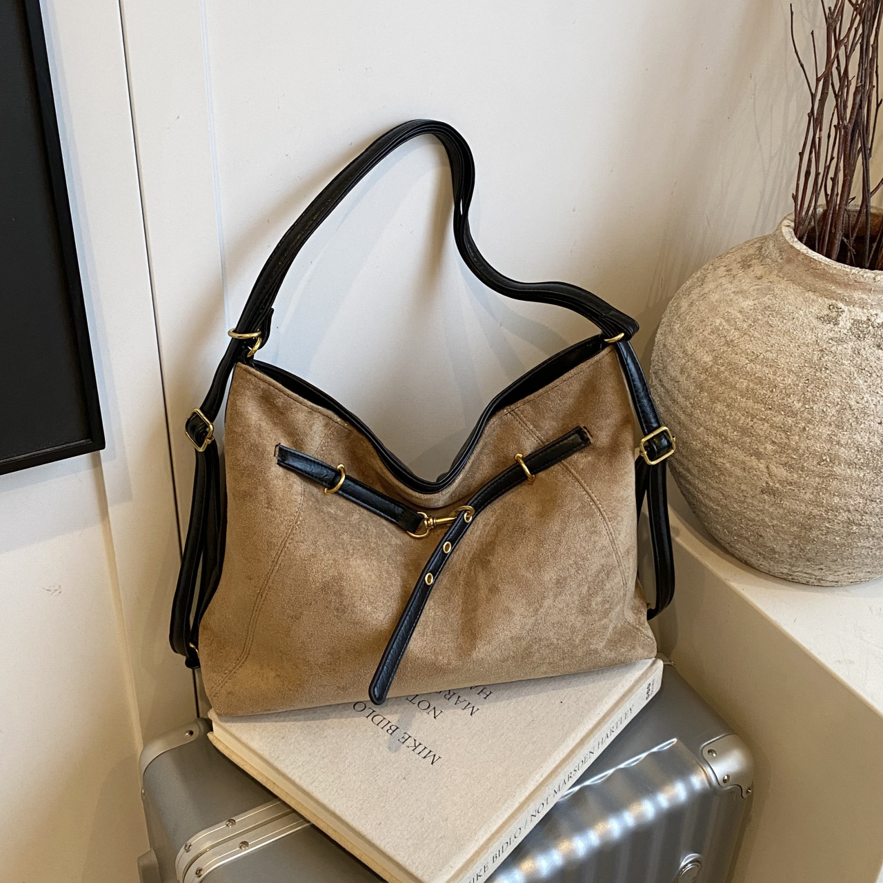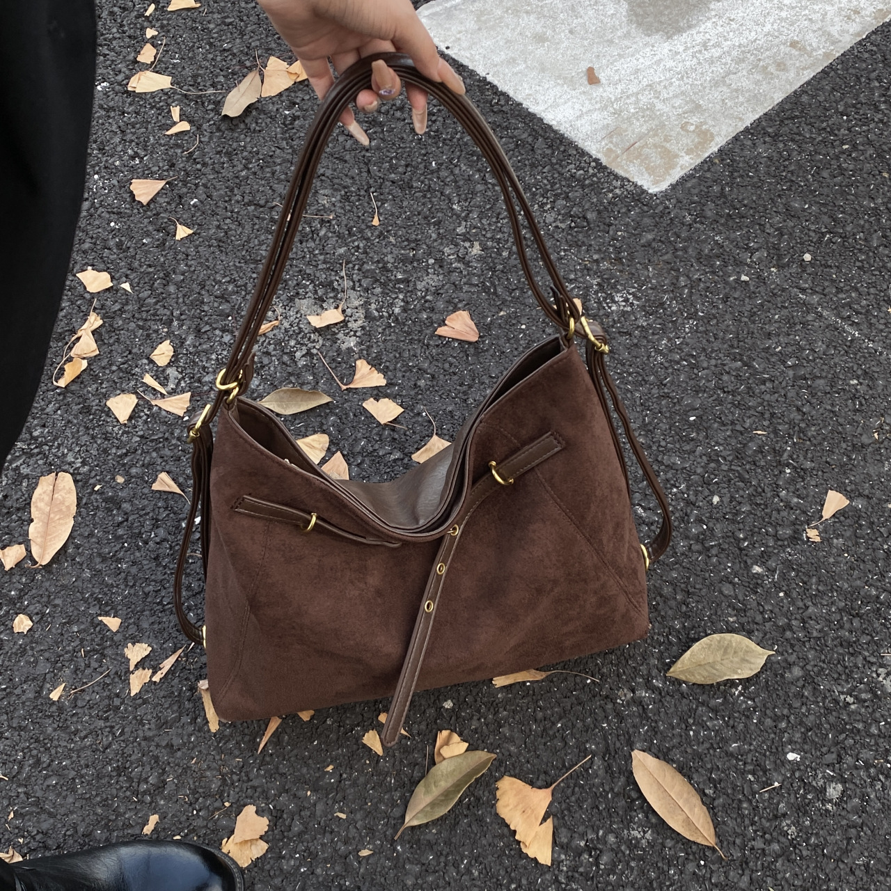 潮酷机车风磨砂大包包女跨境新款时尚麂皮绒托特包秋冬通勤斜挎包