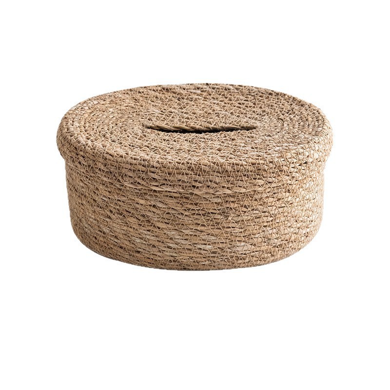 亚马逊手工草编纸巾盒客厅家用桌面草编抽纸盒餐桌茶几抽纸收纳盒