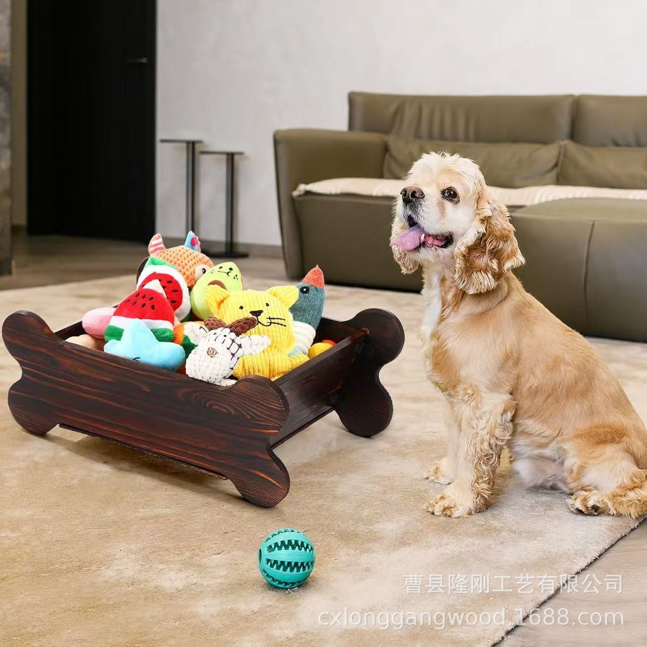 跨境木质宠物用品整理架桌面宠物零食储物架实木玩偶玩具收纳架