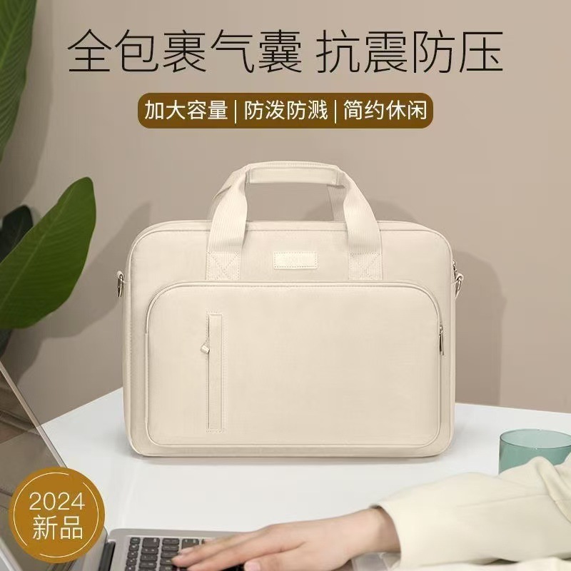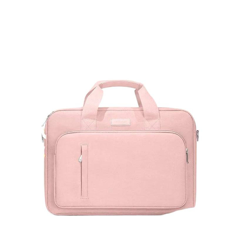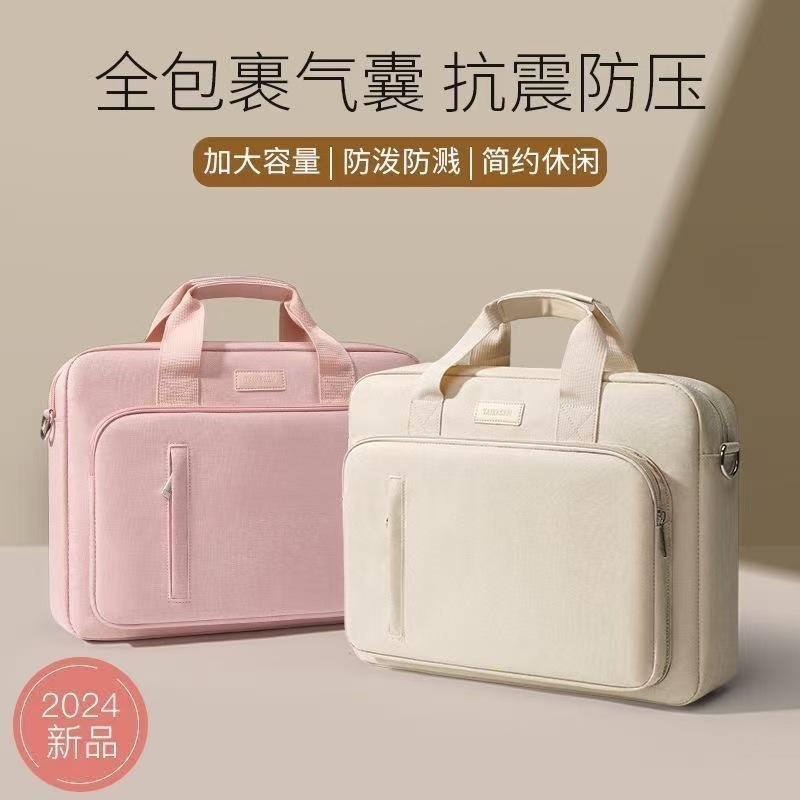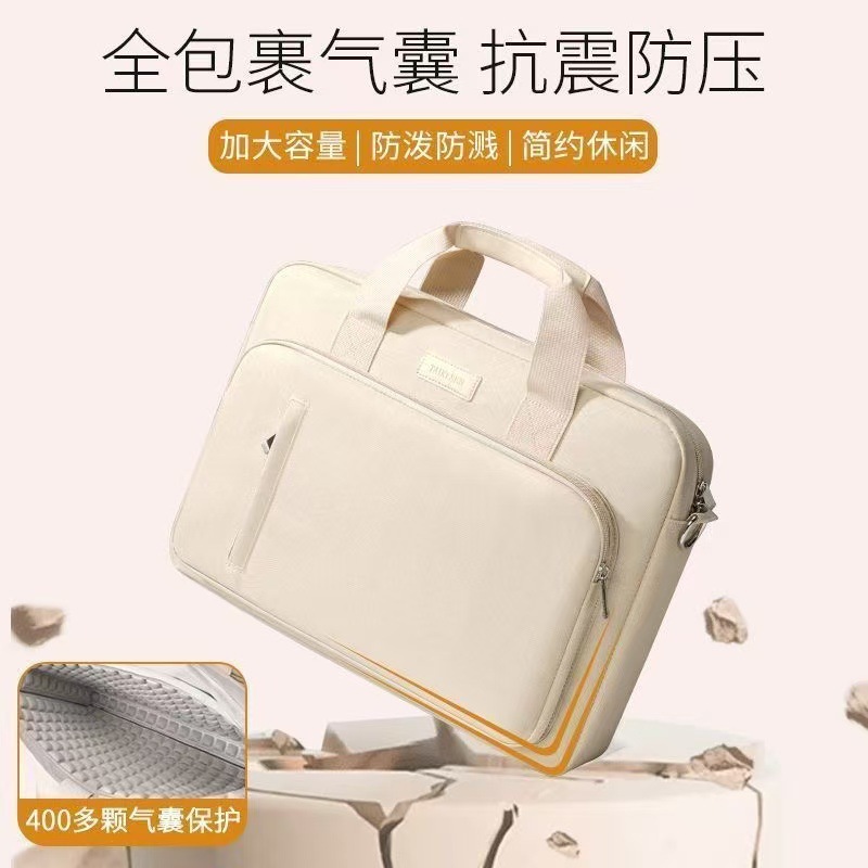 少女粉米卡其笔记本电脑包手提单肩斜挎简约风游戏本全方位防震