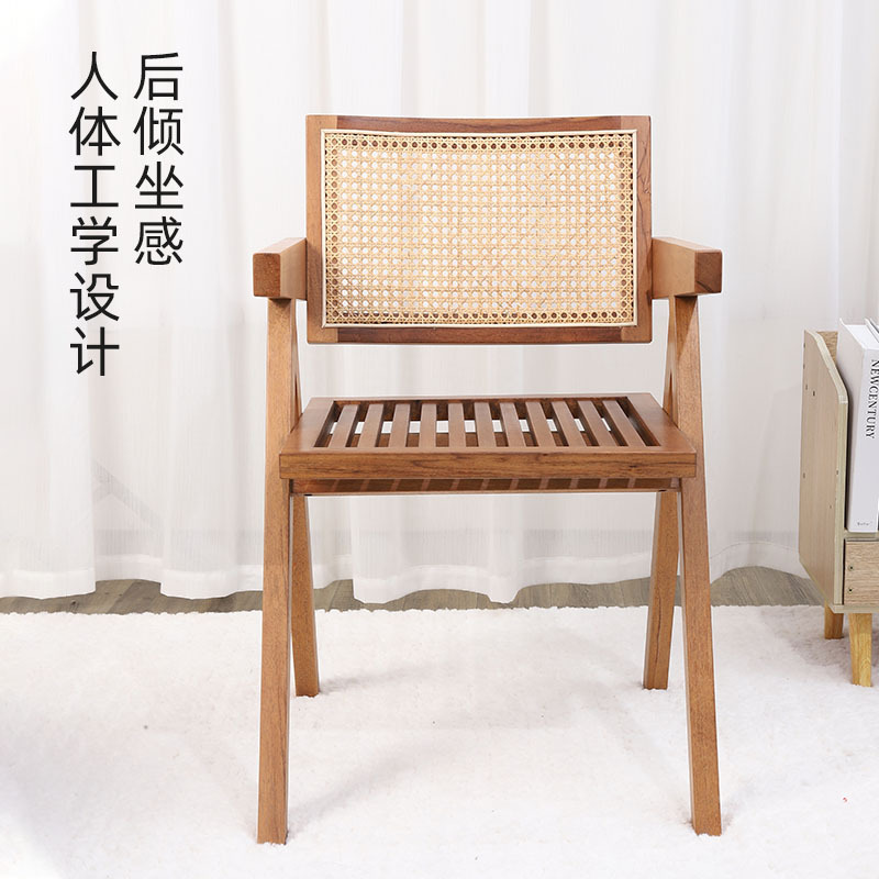 黄金檀纯原木藤编椅子餐椅靠背家用民宿藤椅简约阳台休闲扶手实木