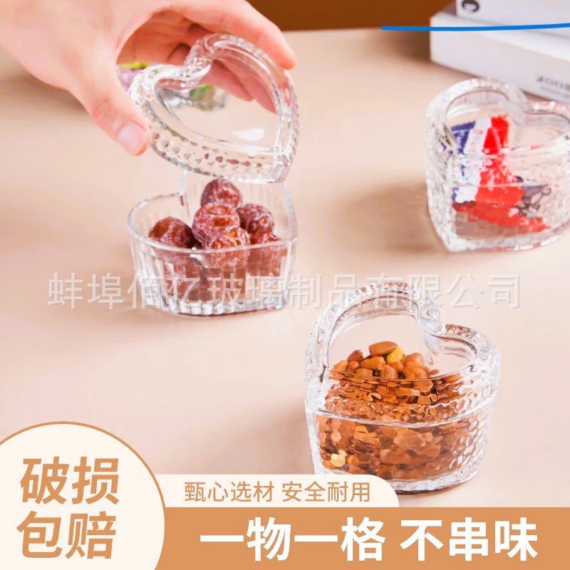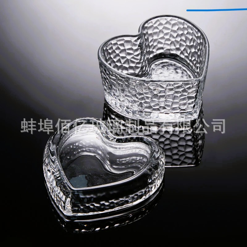欧式浮雕复古爱心玻璃碗水果盘带盖酸奶碗收纳零食坚果盘首饰盒