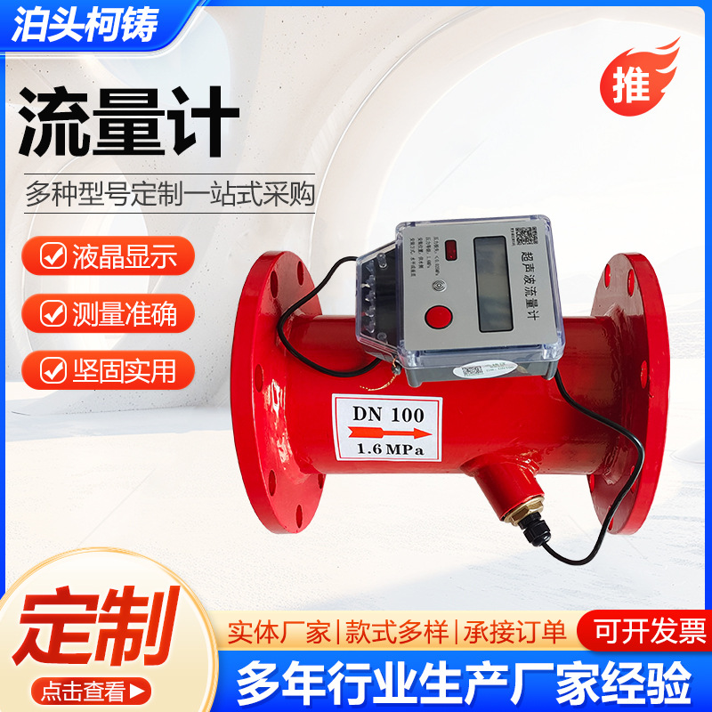 管道流量计带液晶显示管道流量控制计消防沟槽式超声波管道流量计