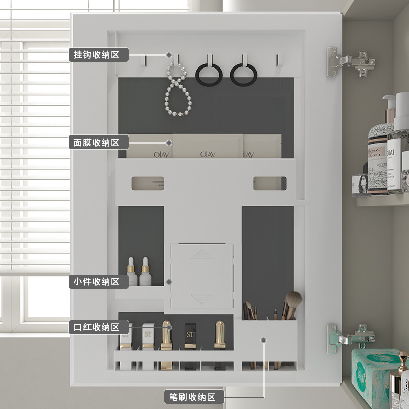 | 规格 | 90CM配椭圆镂空普通镜柜 | 规格 | 90CM配椭圆镂空智能镜柜 |