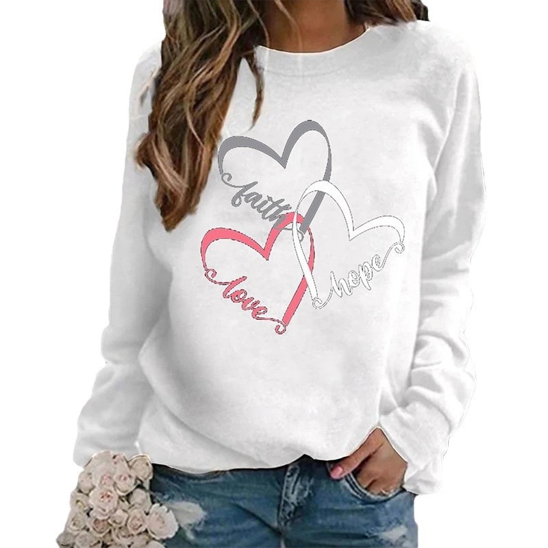 跨境独立站情人节热卖卫衣圣诞帽爱心图案印花圆领长袖卫衣定 制
