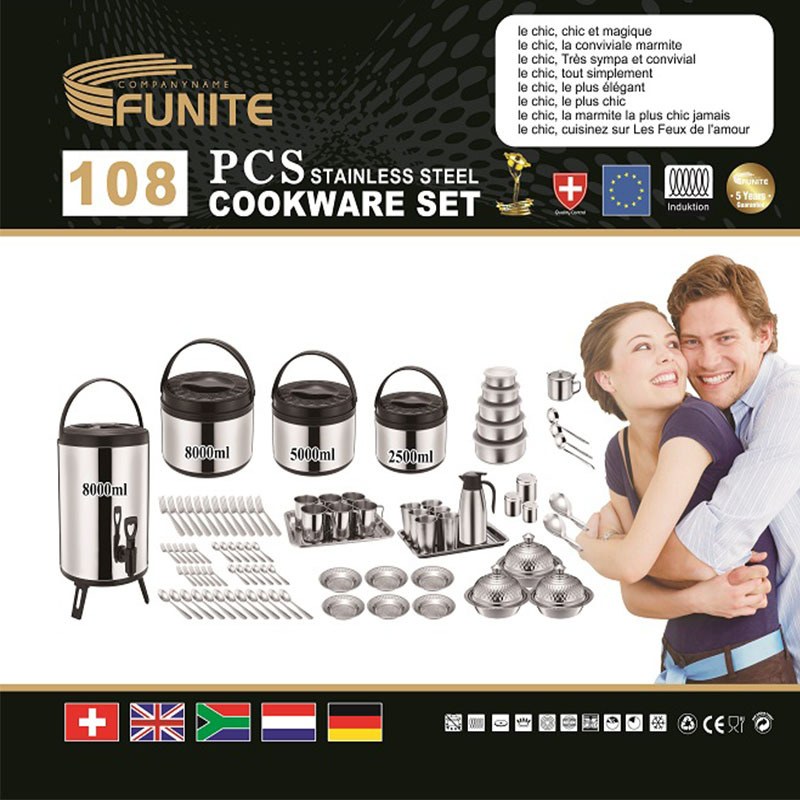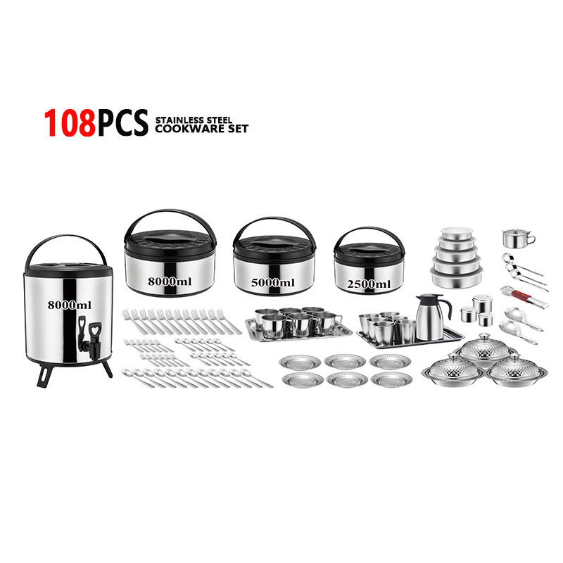 FUNITE 108PCS不锈钢保温开水桶提锅奶茶桶保温套装锅Food Warmer
