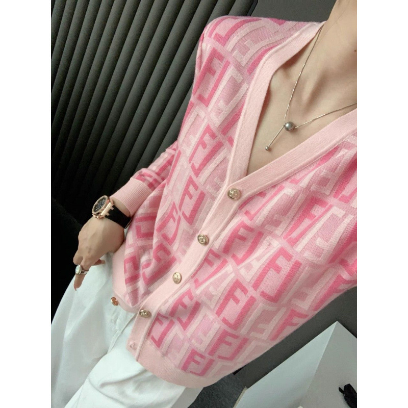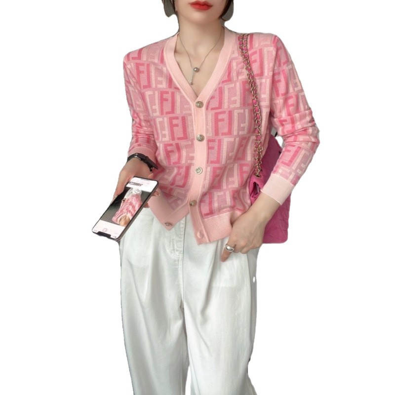 欧货2025新款时尚百搭长袖粉色字母提花洋气针织开衫外套上衣女