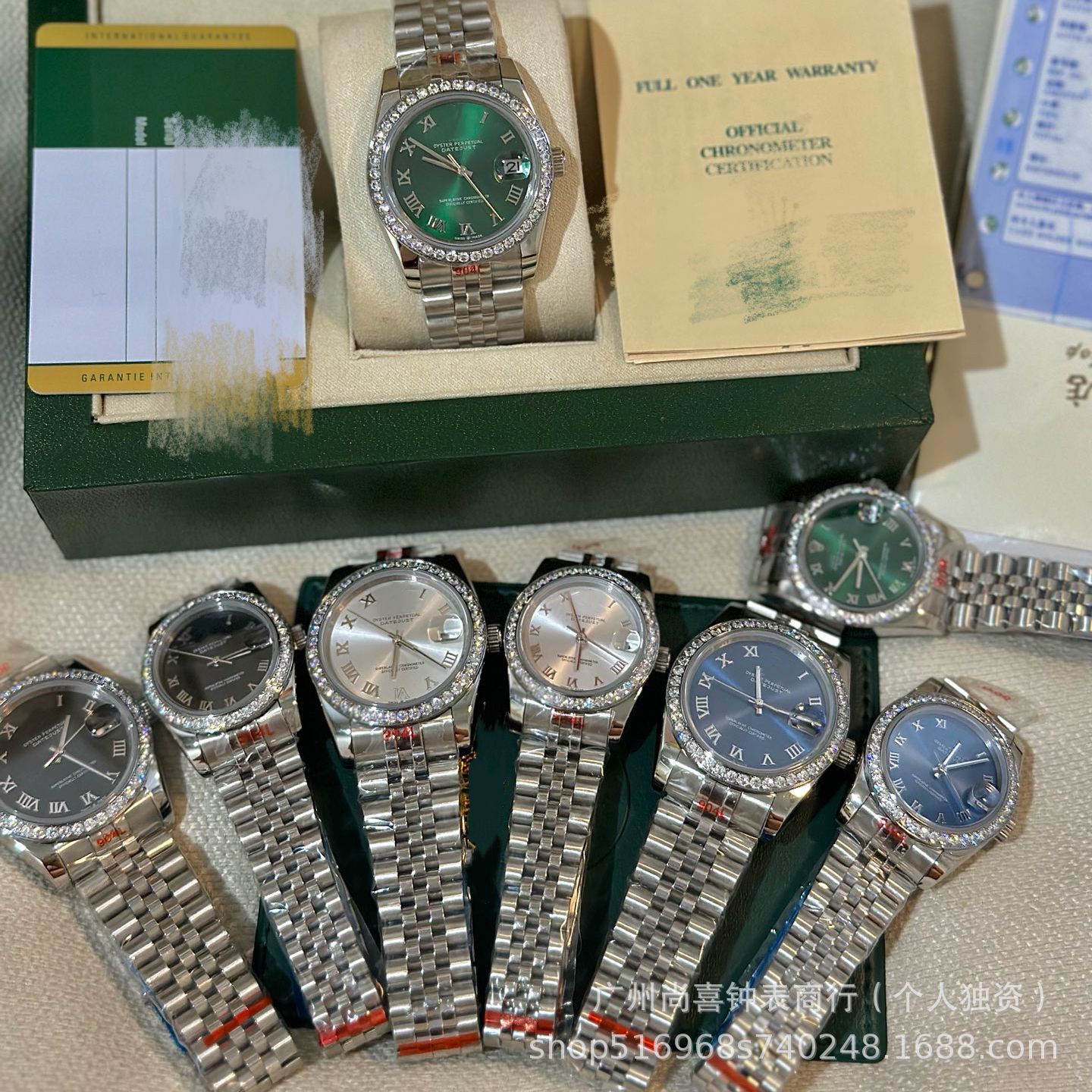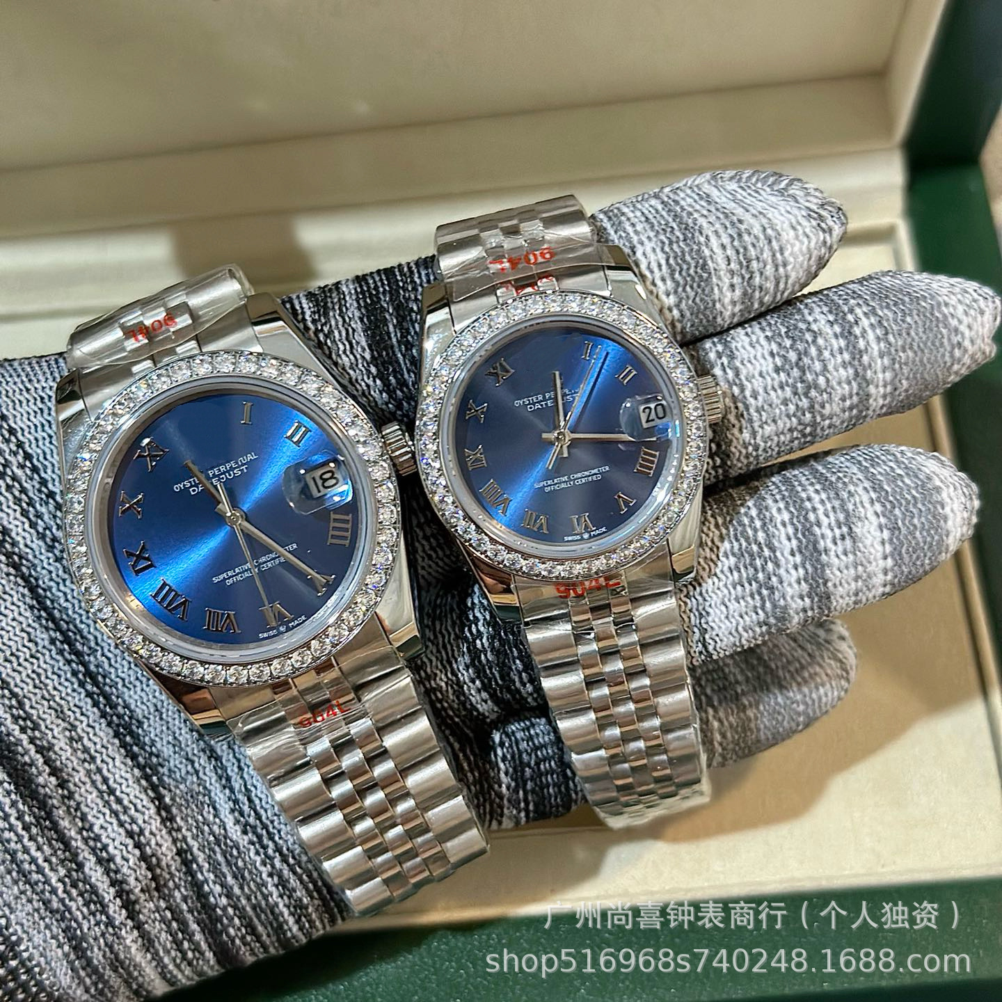 劳家男士女士日志型自动机械手表蚝式钢带钻面蓝宝石单历情侣手表