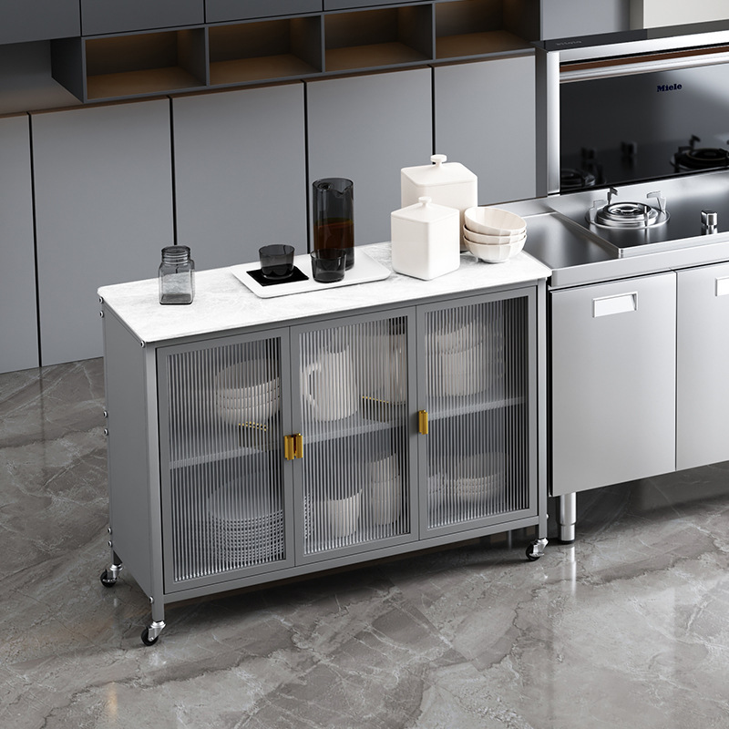 厨房岩板置物柜靠墙落地多层收纳柜餐边对开门收纳柜家用储物柜