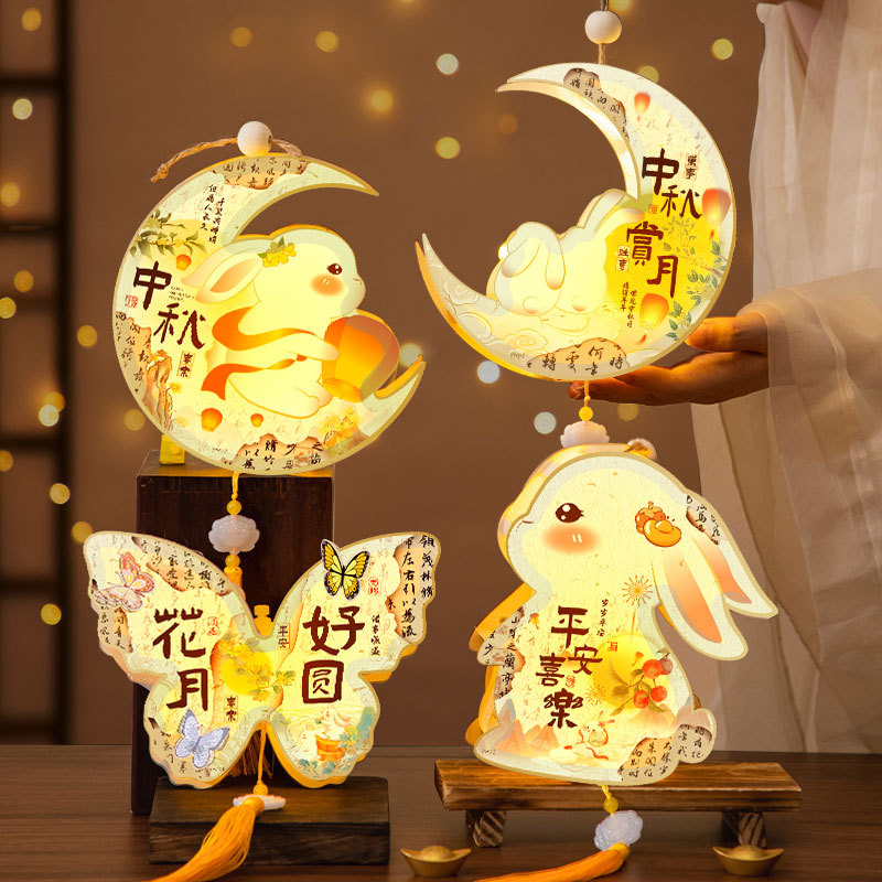 中秋节兔子灯笼2025新款玉兔手提花灯八月十五儿童手工diy材料包