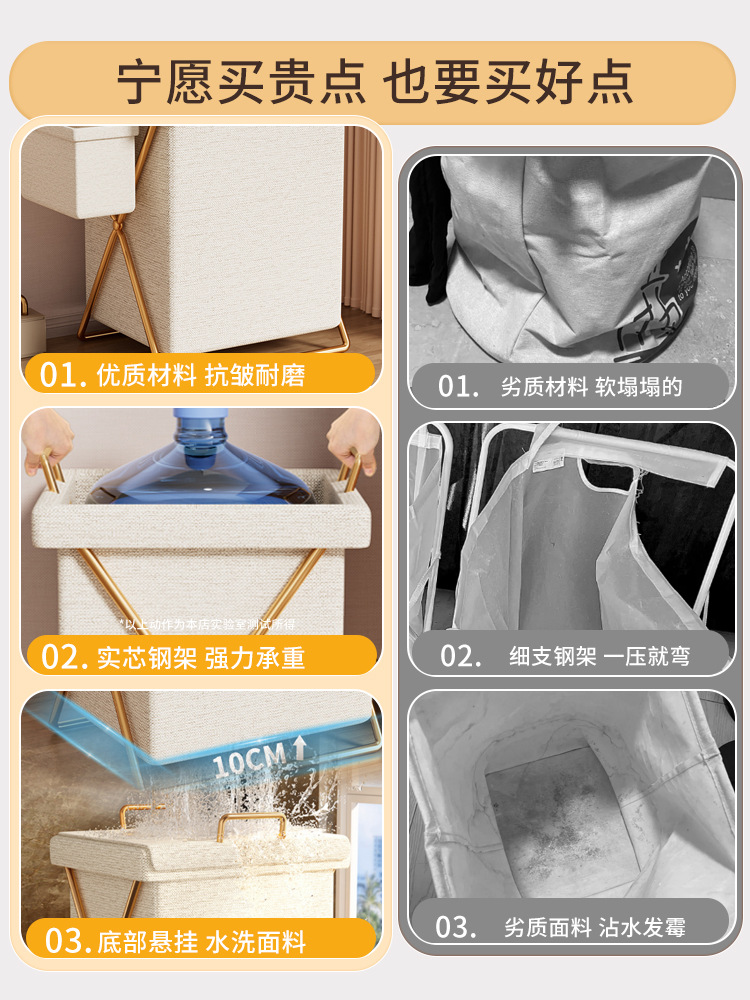 颜色 | 米色中号【翻盖款送袜子篮】防水防潮/加粗钢架/亲肤无味 | | 颜色 | 灰色大号【翻盖款送袜子篮】防水防潮/加粗钢架/亲肤无味 |
