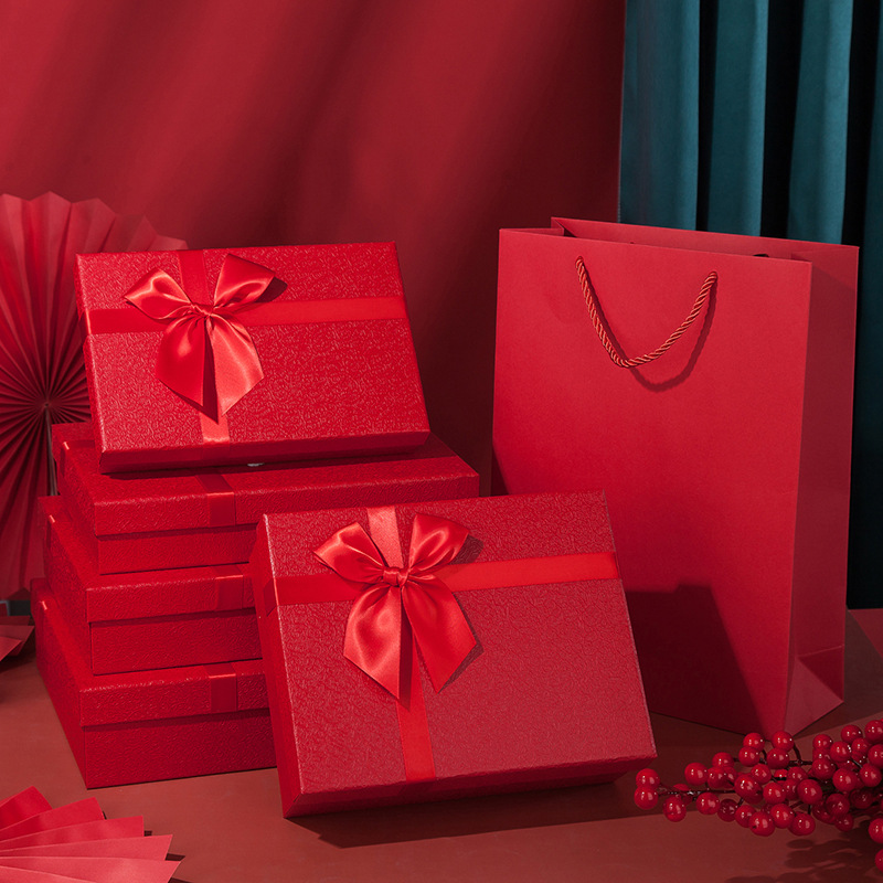 红色喜庆包装盒空盒结婚伴手礼盒衣服围巾礼物盒简约礼品盒子