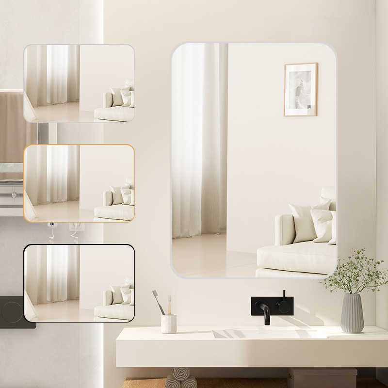 浴室镜挂墙式镜子免打孔贴墙带框卫生间厕所洗手盆高清化妆镜玻璃