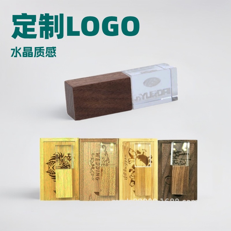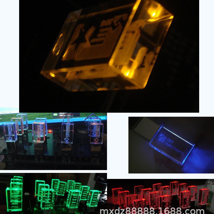 ‌高透光创意水晶U盘 内雕立体定制LOGO 高亮彩色LED 企业促销品