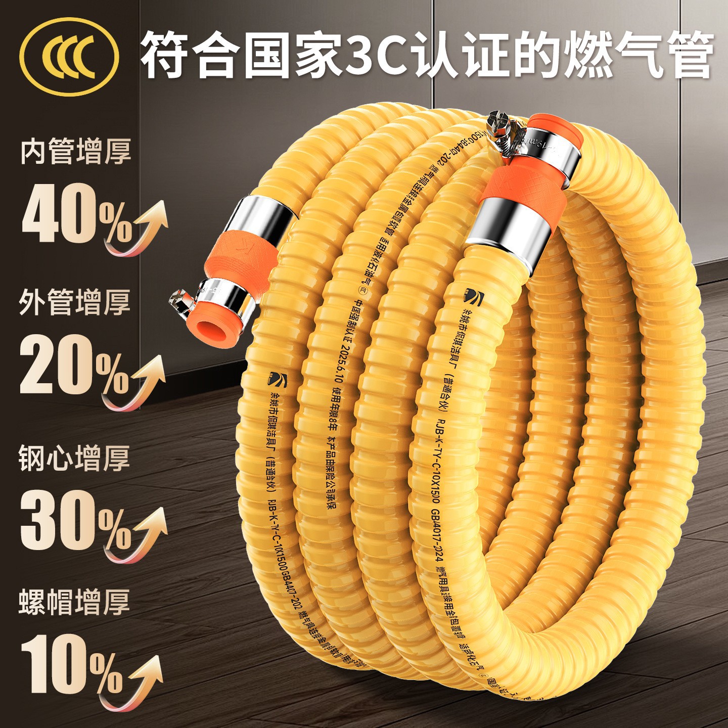 新国标3c认证加厚防爆燃气管家用304不锈钢天然气煤气灶液化气管