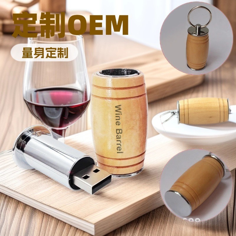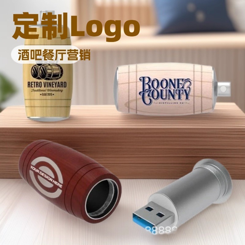 复古木酒桶闪存盘 酒吧主题U盘 金属扣环设计 开业庆典促销礼品