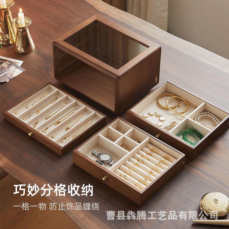 轻奢实木首饰盒中国风收纳盒防氧化饰品盒乔迁结婚送女友闺蜜礼物