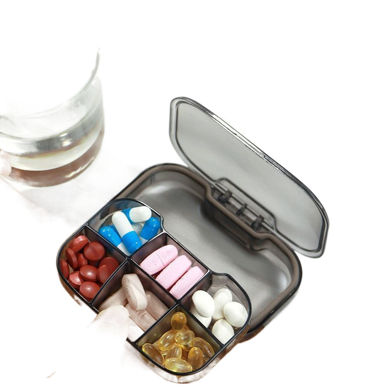药片小分药盒便携药品分装收纳盒一日三餐密封装随身一周七天灰色
