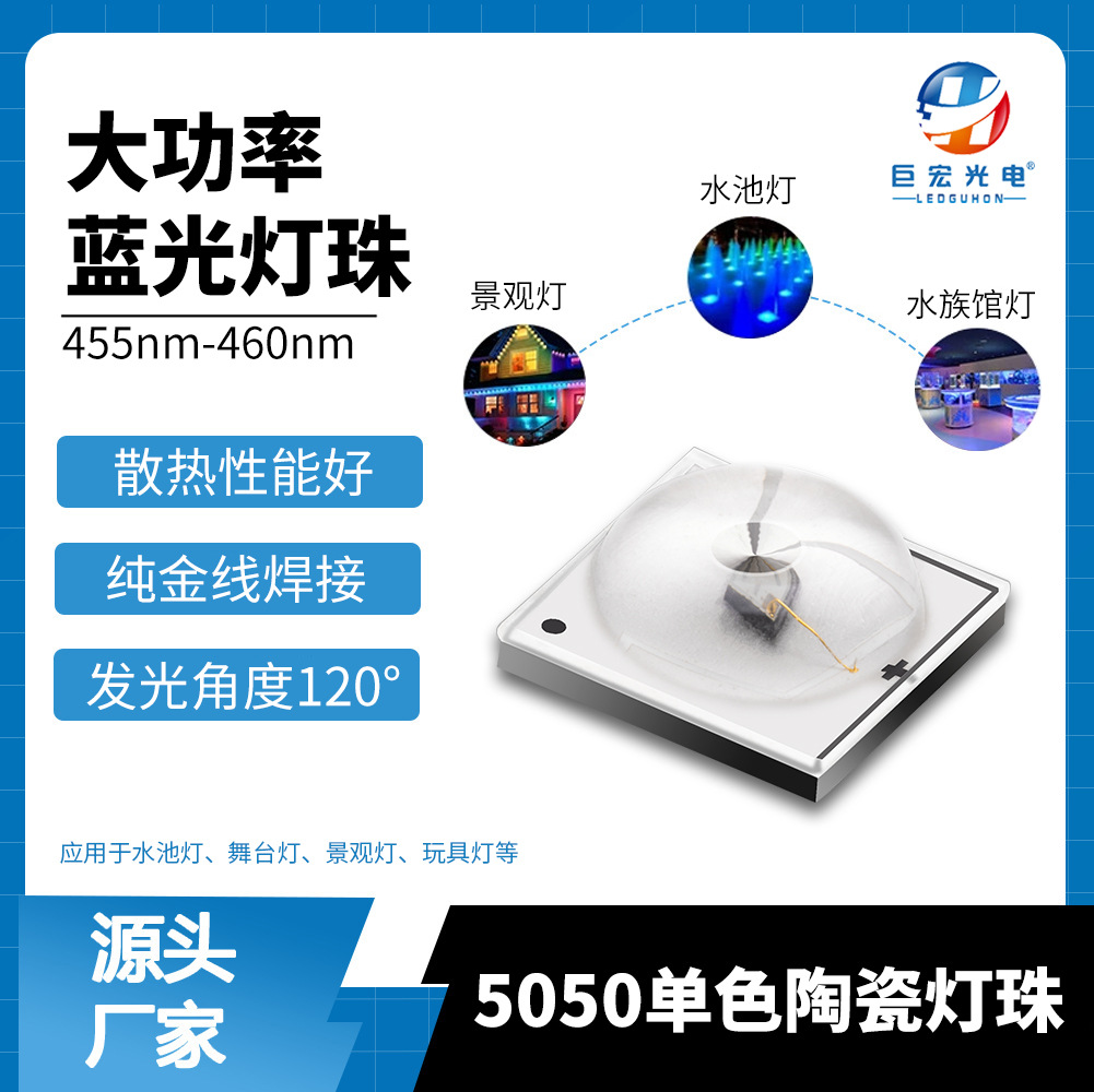 定制5050彩光陶瓷灯珠150度球头户外照明大功率1W红光蓝光led光源