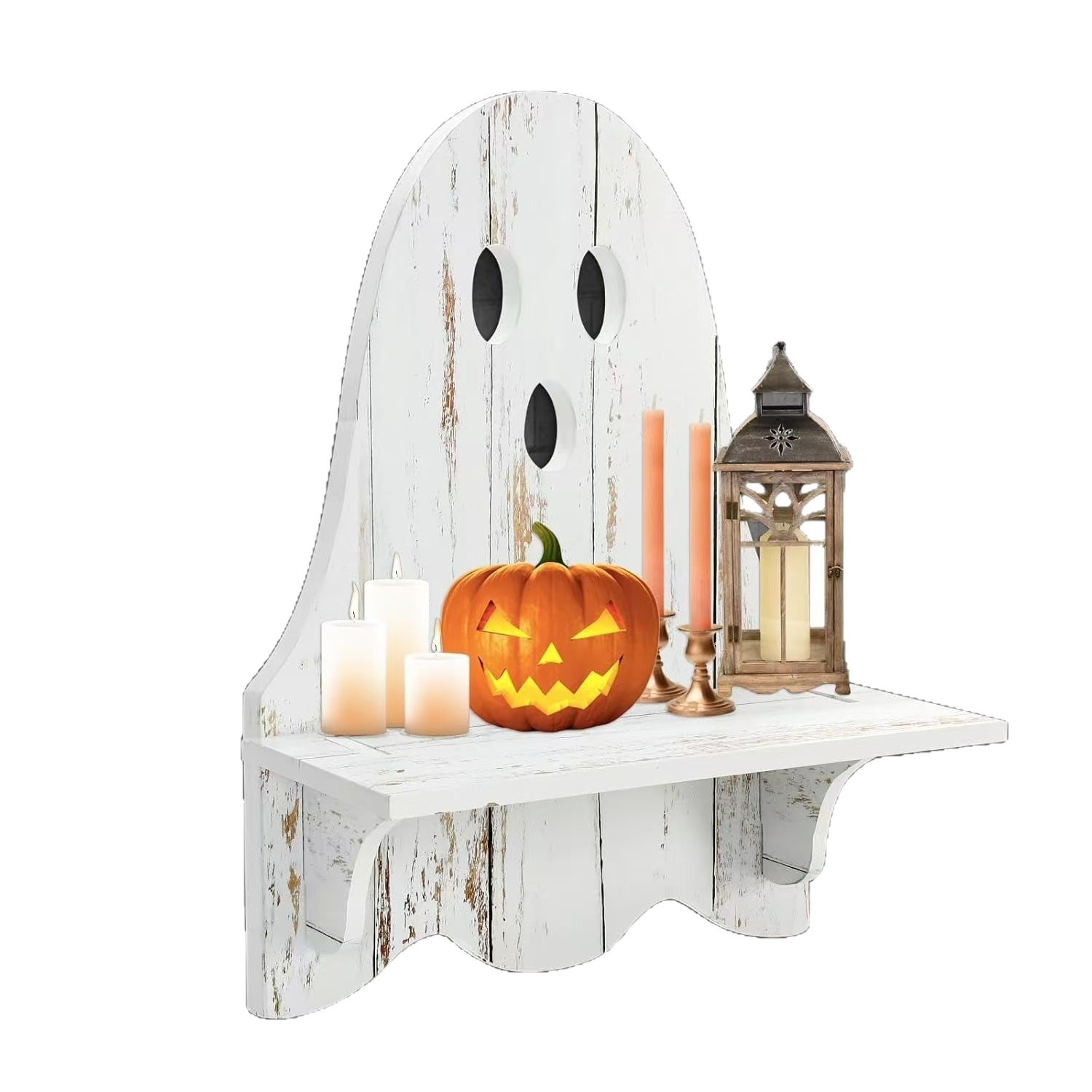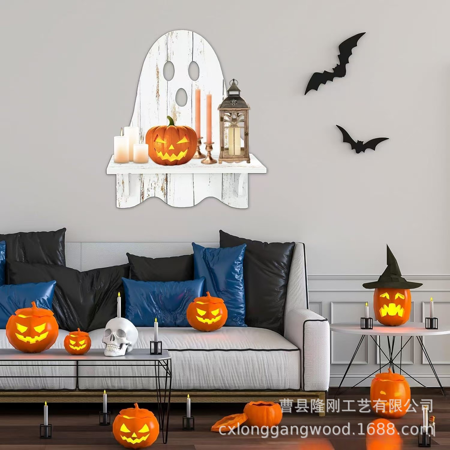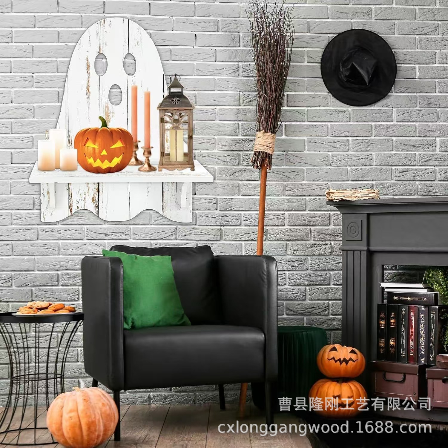 定制款木质万圣节墙壁摆件民宿酒店蜡烛台底座杂物架实木收纳架