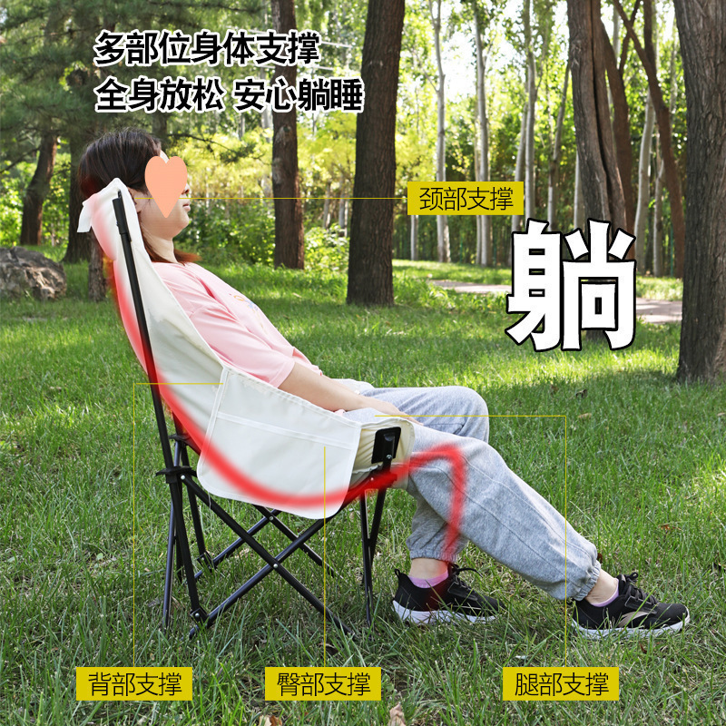 户外加高款月亮椅折叠椅子便携式野外露营马扎懒人椅高靠背椅子..