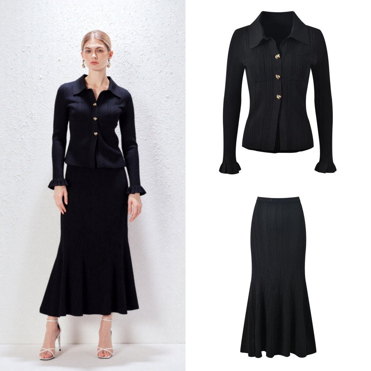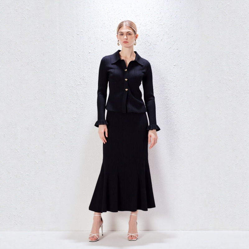 | 风格 | 英伦风 | 1 | 2025秋冬季欧美新款长袖针织毛衣上衣+半身鱼尾长裙 爆款套装连衣裙 |