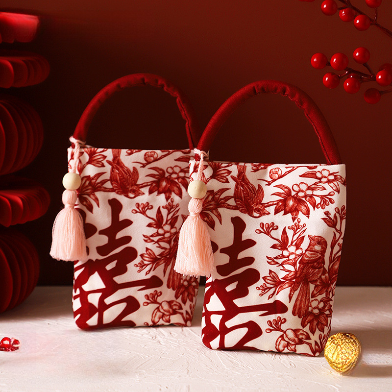 新款结婚喜糖袋子伴手礼袋糖果布袋空简约高级婚礼回礼糖果布袋