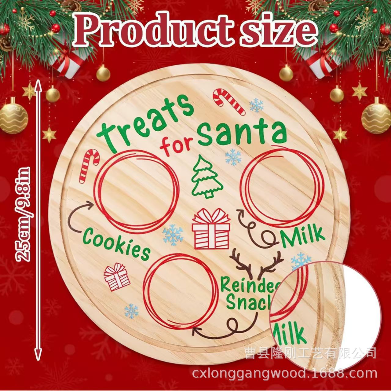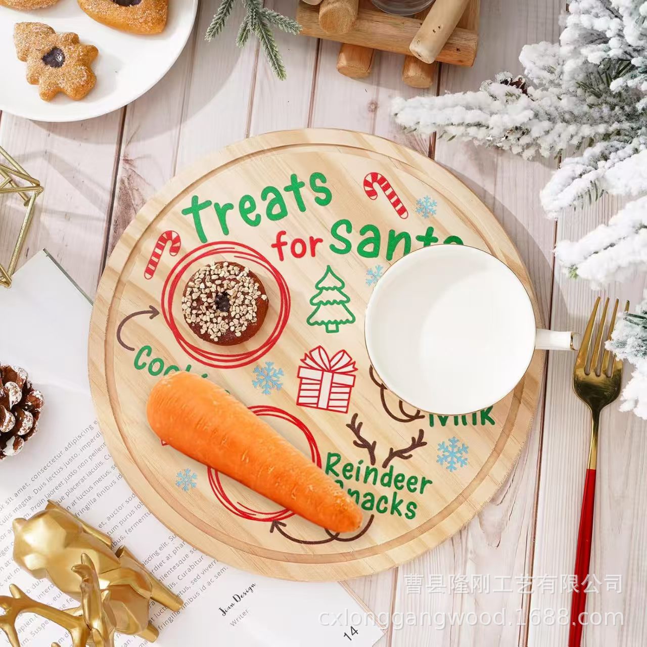圣诞节甜品盘木质托盘圆形儿童辅食菜板私募万圣节氛围摆件置物盘