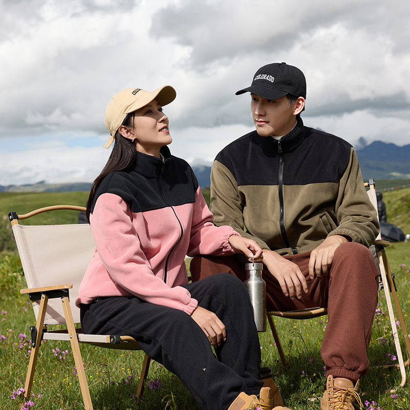 户外热卖秋冬拼色抓绒衣男女摇粒绒上衣开衫双面绒保暖加厚情侣款